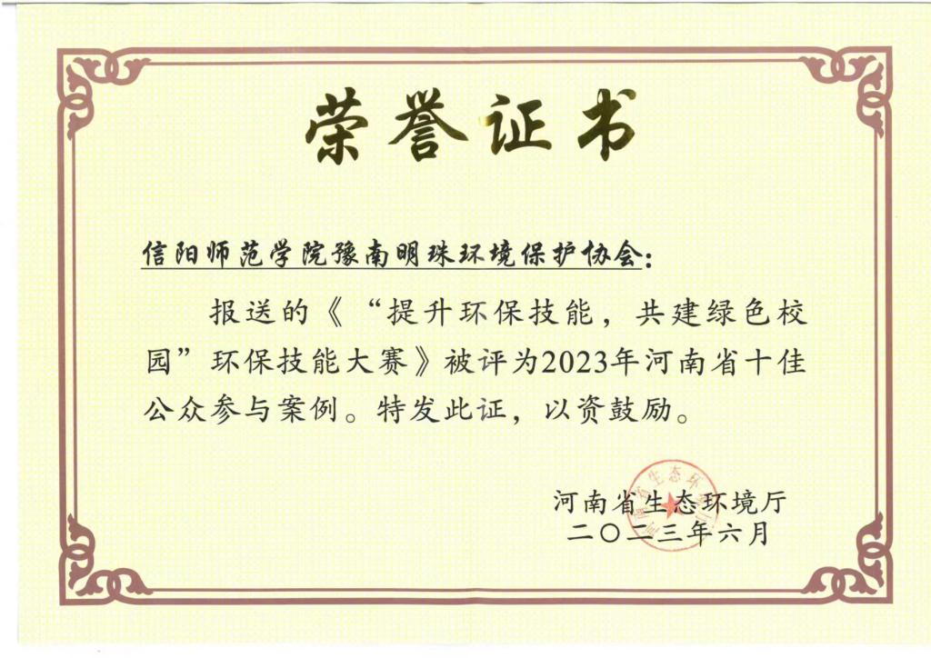 6月5日上午,2023年六五环境日河南省主场活动在郑州隆重举行,副省长刘玉江出席。校党委副书记、工会主席岳宗德受邀参加。我校豫南明珠环境保护协会提交的“提升环保技能,共建绿色校园”环保技能大赛案例荣获“2023年河南省十佳公众参与案例”,是全省教育系统唯一获奖案例。