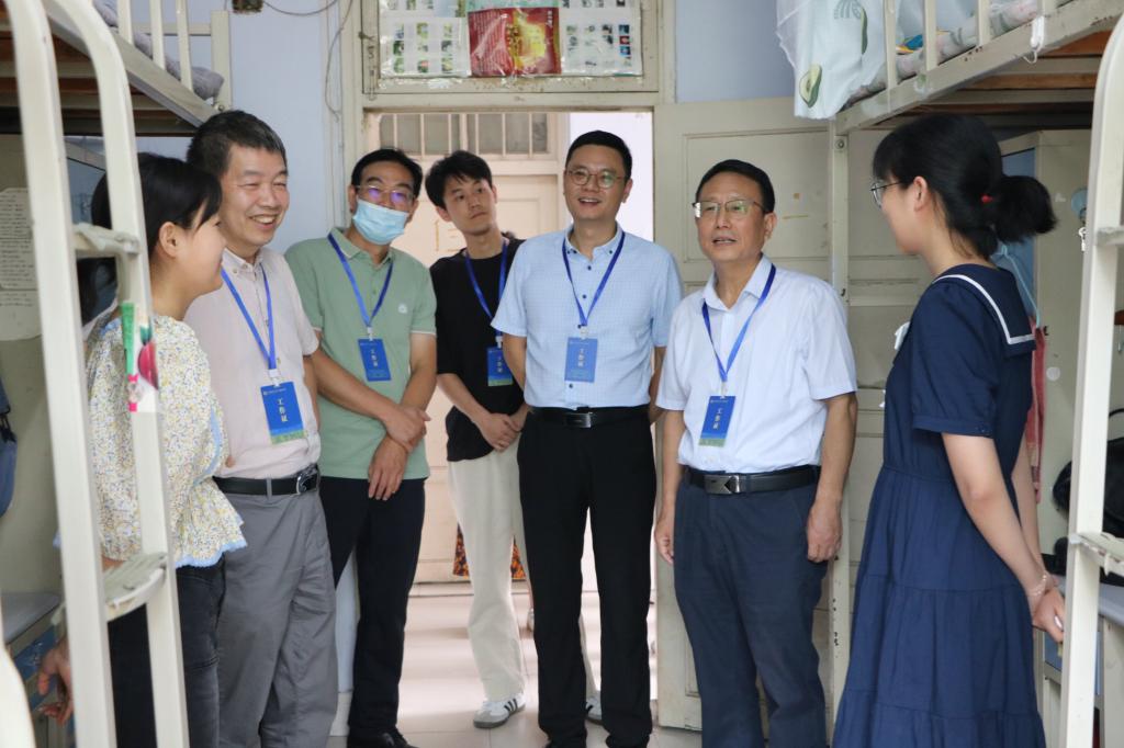 领导班子成员与新生班主任一同前往现场指导工作并走访新生宿舍。学院党委书记李宝峰从思想上引导新生提高政治站位、坚定理想初衷、明确奋斗目标,从行动上嘱咐学生自觉遵守宿舍管理规章制度、养成健康文明生活习惯、妥善统筹安排时间,成长为一名合格的时代新青年。院长唐国战就宿舍环境、生活需要、专业学习等方面与学生展开亲切交流,关怀新生入学体验,勉励新生学好专业知识,实现奋斗目标。