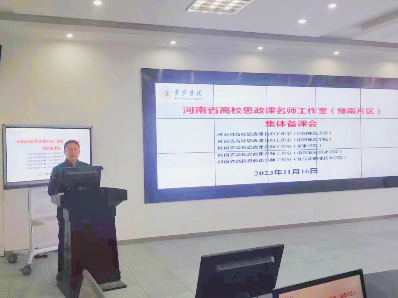 本次集体备课会以习近平文化思想融入高校思政课教育教学为主题,会议采用示范展示与集体研讨相结合的方式举行,由豫南片区五所高校名师工作室各选一门课程就习近平文化思想融入思政课的做法与经验进行教学展示。