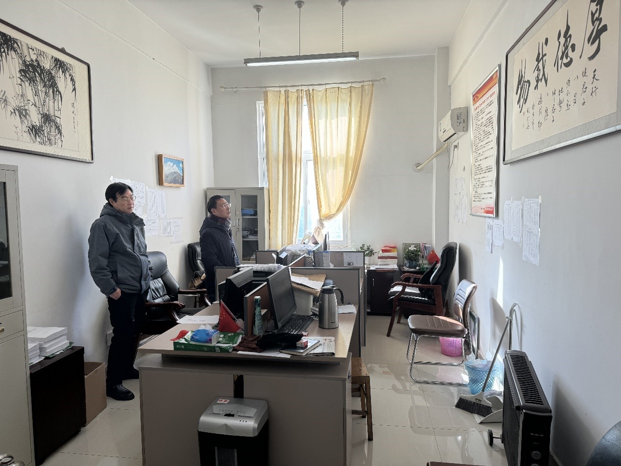 院长唐国战、副院长周智带领办公室工作人员开展寒假期间实验室和办公场地的安全检查工作。