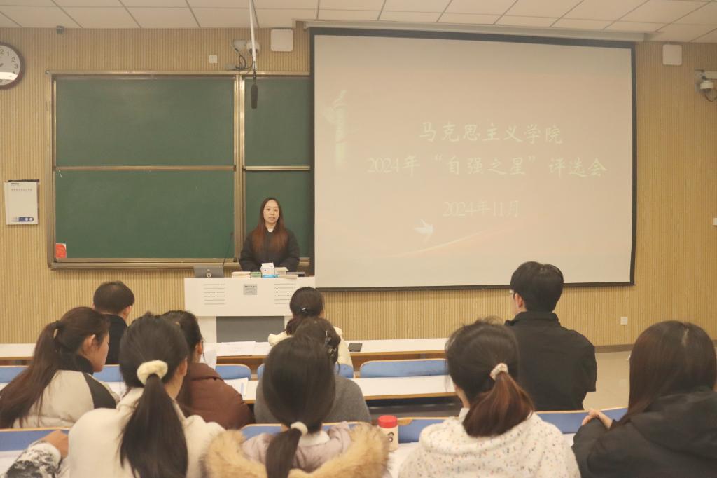 陶青青对本次评选大会做出总结。首先,她指导选手发挥个人优势,树立榜样力量,带动同学们积极响应国家号召,将小我融入大我。其次,她要求在场学生要有榜样、有目标、有信仰,以“自强之星”为标杆,努力成为一个全面发展、德才兼备的思政骨干同学。最后,她强调此次评选会不仅是对个人奋斗历程的肯定,更是对小说狂人