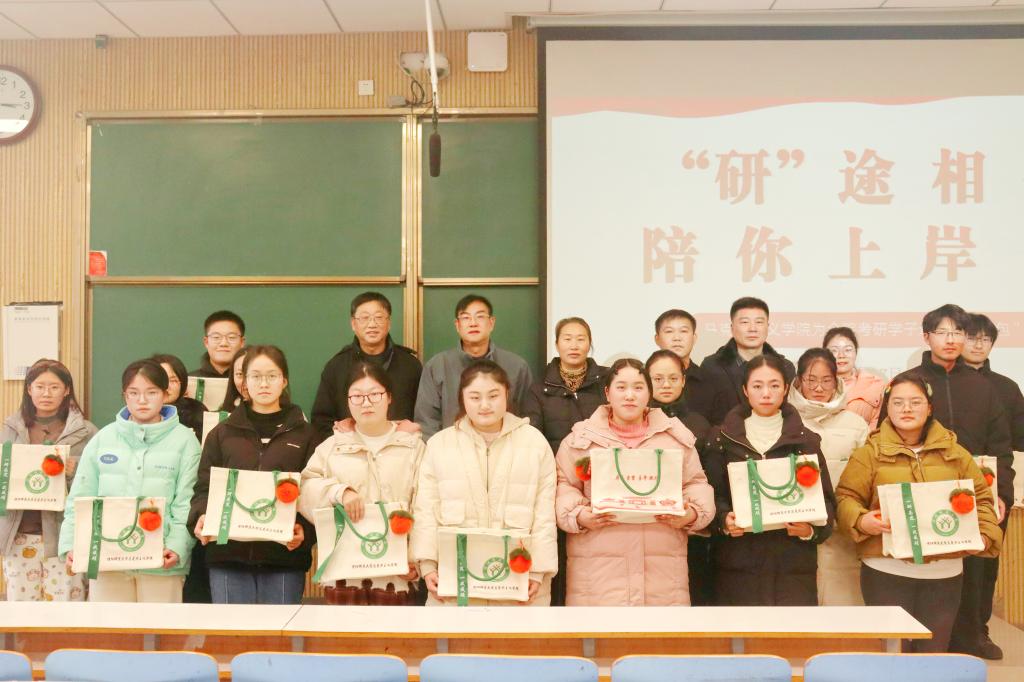 领导的到来表示真挚的感谢,并介绍了本次活动的主要内容。接着,程晋富代表学院对考研学子们致以亲切的慰问,从知识储备、身心状态、应试技巧三方面为同学们提供了宝贵的建议。他指出,在最后的考研阶段同学们应该抓大放小,坚持良好的学习习惯,调整好身体和心理状态,鼓励同学们自信昂扬不放弃,用最好的精神面貌迎接最后的考验。在场领导共同为考研学子发放考研“加油包”并送上祝福,希望他们在考场上奏响胜利华章,一战成“硕”。同学们从这些美好礼物中感受到了鼓励和温暖,他们表示,将不负学院老师们的殷切期盼和浓浓关爱,以更加饱满的热情和更加坚定的信念,投入到备考中。