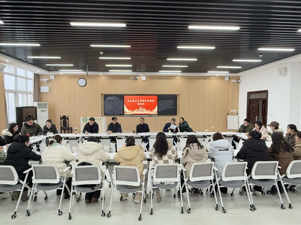 在社科楼516室召开青年教师座谈会。学院领导班子成员与20余名青年教师围坐一起,回顾入职以来的感悟与体会,共话职业成长与发展,共谋马院发展与未来。会议由小说狂人