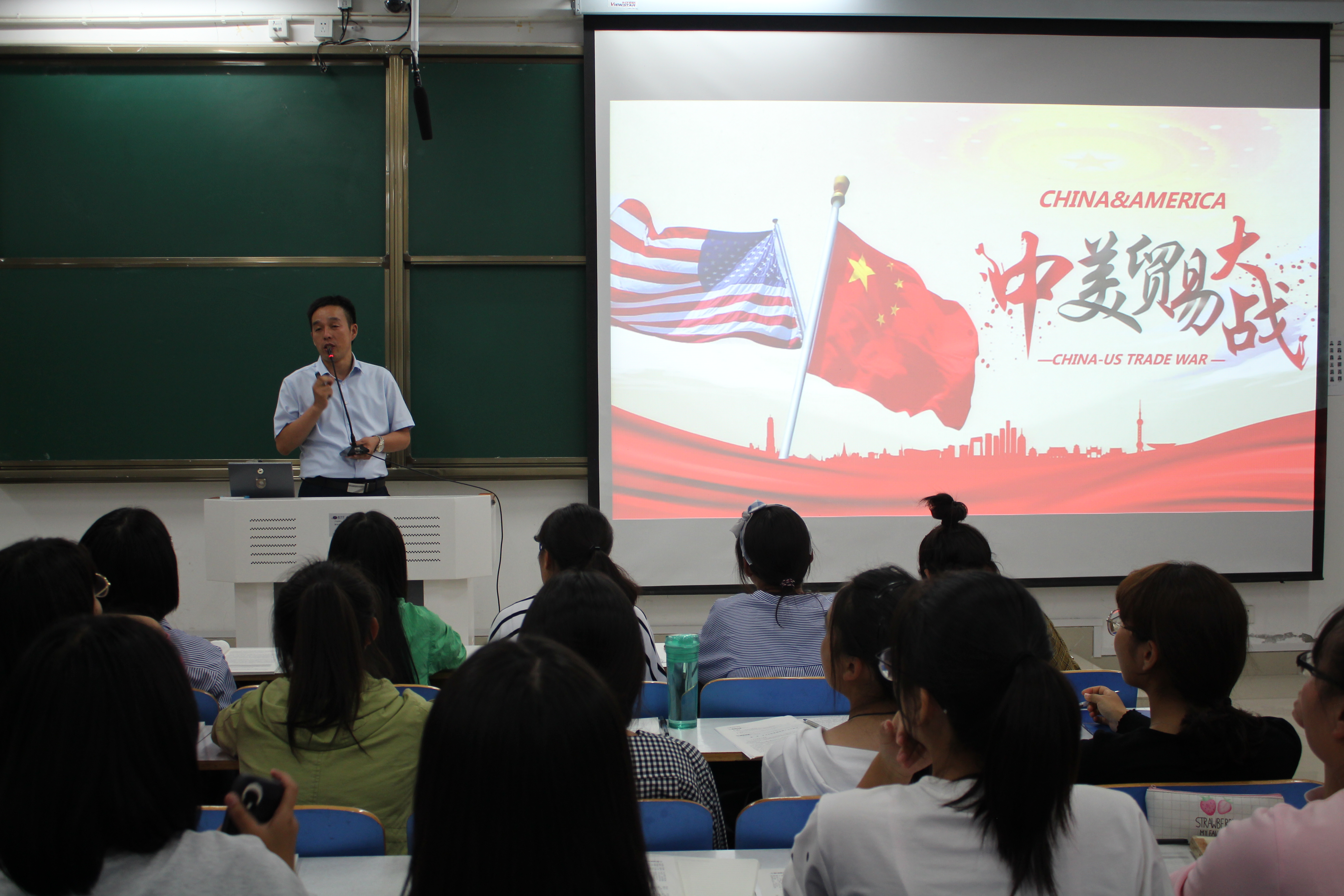 课上,王帆宇首先以中国“入世”以来中美贸易摩擦不断为切入点,剖析了中美贸易战的发展历程、涉及领域以及对双方带来的影响,科学阐明了我国应对中美贸易战而出台的重大战略部署。接着,他把中美贸易战和上世纪的中日贸易战进行对比,突出中国的发展迅速和顽强的生命力。他表示,霸权主义只会两败俱伤,中国“不会怕,不会躲”,贸易战动摇不了中国向好的一面。最后,王帆宇总结,贸易战有危险也有机遇,它的另一个实际效果是倒逼中国进一步加快体制改革,坚定不移地推动改革开放。本次形势与政策课内涵丰富,极大地激发了同学们的学习兴趣,现场学习气氛浓厚。