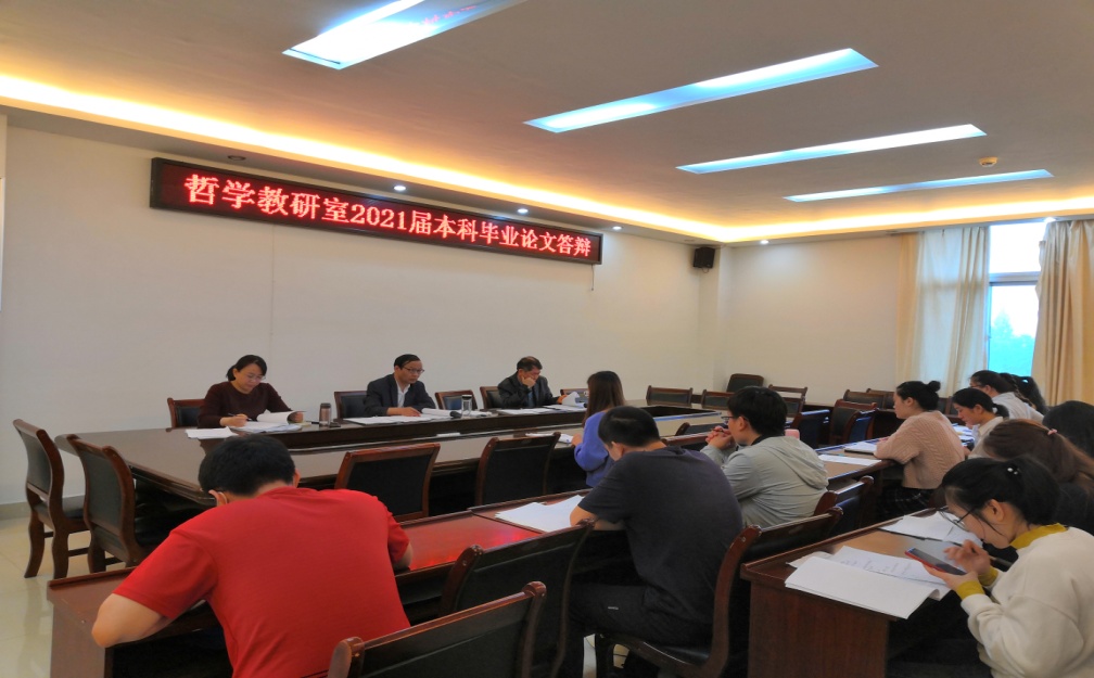 哲学教研室分为三个小组展开2021届本科毕业论文答辩工作。第一组答辩于2021年5月14日上午在社科楼323会议室进行,答辩组的成员为李世书、张铁山和张冉等,李世书任答辩组组长,19名同学参加答辩;第二组答辩于2021年5月14日上午在社科楼515教室进行,答辩组的成员为方文群、程林和李春生等,李春生任答辩组组长,18名同学参加答辩;第三组于2021年5月16日上午在社科楼515教室进行,答辩组的成员为王瑞芳、訾其伦和刘玉军等,王瑞芳任答辩组组长,27名同学参加答辩。