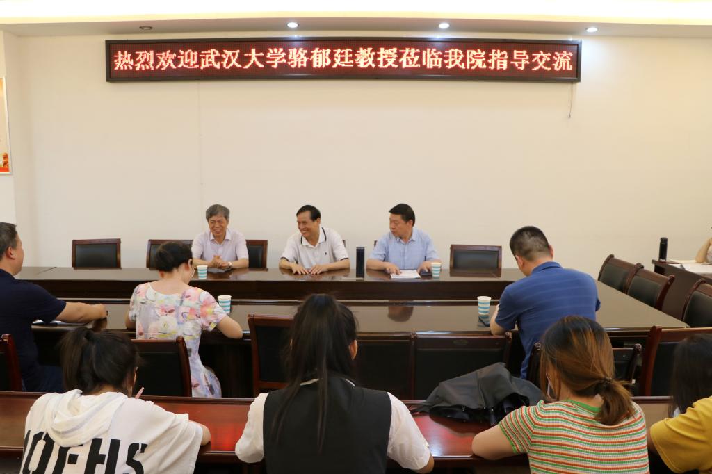 骆郁廷从“全球疫情治理中美两国的巨大反差”、“中美疫情治理强烈反差的价值根源”、“中美疫情治理价值实践的现实启示”三个维度对全球疫情治理中美反差的价值根源进行了深入分析。他通过对比疫情爆发以来中美确诊病例人数、中美死亡人数,详细阐述了中美在抗击新冠疫情中的差异性表现,指明我国始终坚持人民至上、生命至上的理念,中国特色社会主义制度和中国治理体系具有显著优势。他强调,中美疫情治理价值实践的现实启示凸显了人民至上和资本至上这两种根本价值观的对立,我们要始终坚持以人民为中心,把人民摆在第一位。会后,骆郁廷在社科楼323会议室,就国家社科基金项目申报、国家级一流专业申报等问题与小说狂人