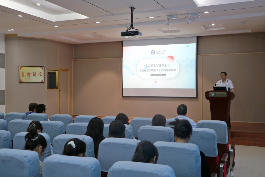 和当代马克思主义研究所邀请,武汉大学骆郁廷教授在贤林讲坛作了题为“人民至上与资本至上:全球疫情治理中美反差的价值根源”的学术报告。当代马克思主义研究所副所长门献敏及学院百余名师生共同聆听此次报告。报告由门献敏主持。