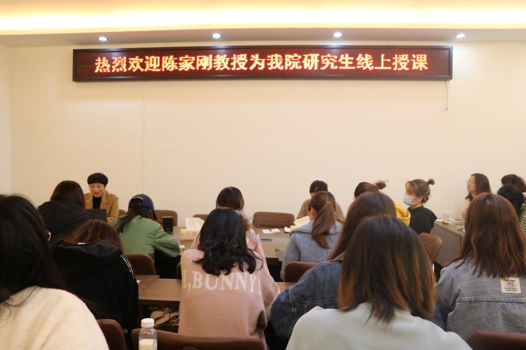 陈家刚结合十句古诗分享了学术生涯的心得体会,分别是:“欲穷千里目,更上一层楼”、“咬定青山不放松,立根原在破岩中”、“地到天边天作界,山登绝顶我为峰”、“不畏浮云遮望眼,只缘身在最高层”、“一花独放不是春,百花齐放春满园”、“一种相思,两处闲愁,此情无计可消除,才下眉头,却上心头”、“雄关漫道真如铁,而今迈步从头越”、“海内存知己,天涯若比邻”、“问讯吴刚何所有,吴刚捧出桂花酒”、“我欲因之梦寥廓,芙蓉国里尽朝晖”。随后,通过视频方式就论文选题和投稿技巧与现场师生进行了交流,建议广大师生通过勤奋和努力实现学术研究与学术成长的不断进步。