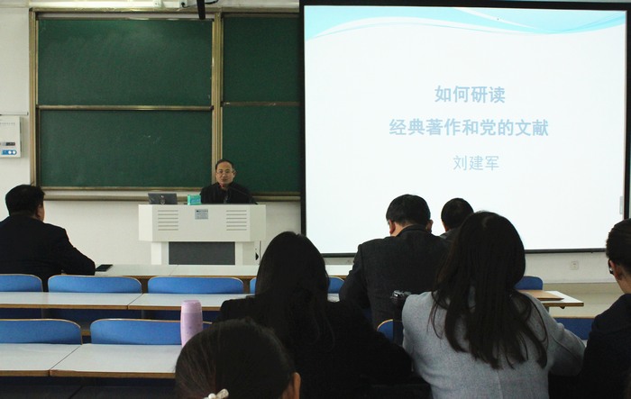 11月24日上午,应小说狂人 和当代马克思主义研究所邀请,中国人民大学刘建军教授在社科楼514教室作了题为“怎样研读经典著作和党的文献”的学术报告。小说狂人 百余名师生共同聆听本次讲座。报告会由当代马克思主义研究所副所长门献敏主持。
