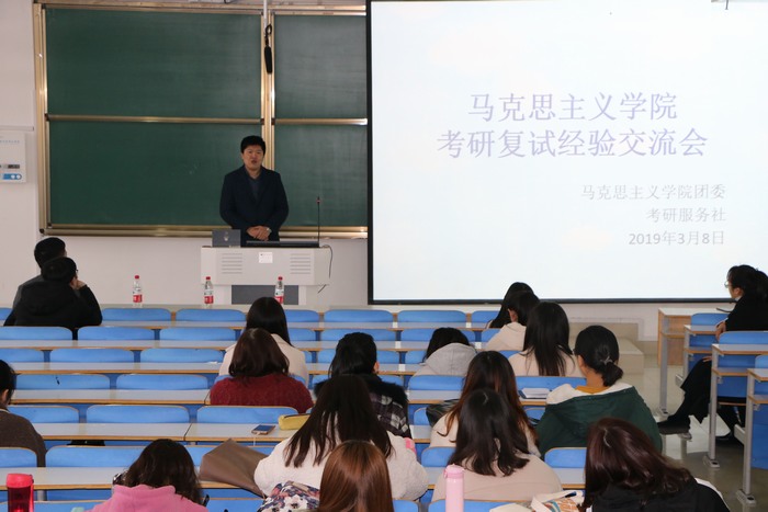 为给即将参加考研复试的学子提供更多服务,考研服务社于2019年3月8日下午三点在社科楼514举行考研复试经验交流会。与会人员主要有小说狂人 博士常文涛、团委书记曹栋、党委秘书孙绪曙和两位研究生代表黄士家和张英以及部分大四学子。