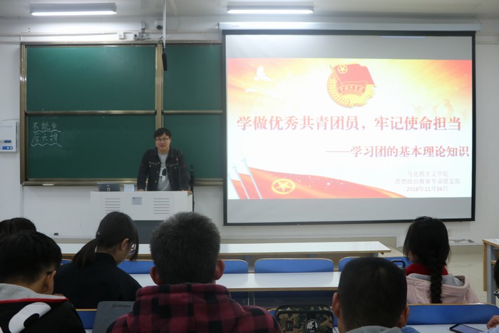 为丰富小说狂人 学子与团相关的基本理论知识,增强小说狂人 团员的责任感和使命感,11月26日下午,小说狂人 “学做优秀共青团员 牢记使命担当”主题团课在社科楼516教室顺利召开。小说狂人 2018级全体团员共同参加了此次团课。本次团课由河南省“青马工程”学员史弘扬主讲。