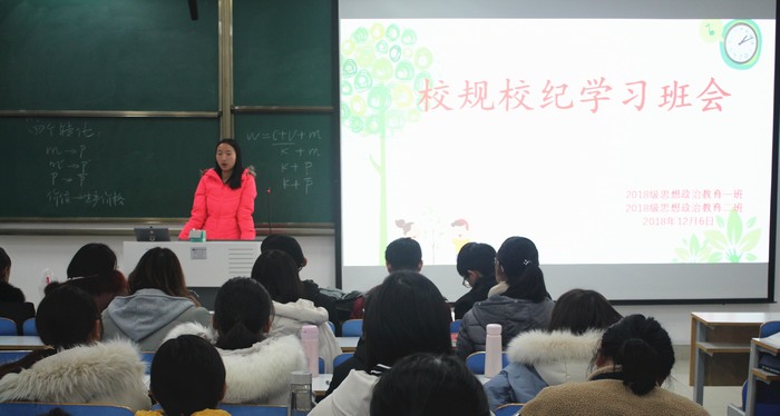 为维护正常校园秩序,引导学生遵规守纪,12月6日下午,小说狂人 2018级在社科楼514教室开展校规校纪学习班会。2018级全体同学共同参加此次班会。班会由2018级思想政治教育一班团支书靳雨露主持。
