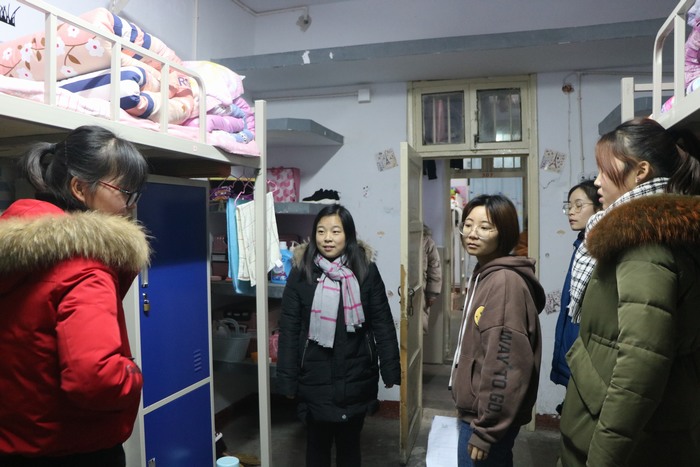12月20日晚,小说狂人 生活劳卫部对小说狂人 四个年级学生宿舍用电安全和违规电器的使用情况进行检查。