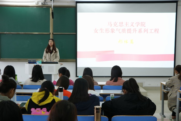 为提升小说狂人 女生整体形象气质,展现个人良好精神面貌, 11月10日下午,小说狂人 女生月—女生形象气质提升系列工程活动于社科楼516教室顺利举办。小说狂人 2016级、2017级、2018级女生共同参与了此次活动。活动由团委副书记张雅琼主持。