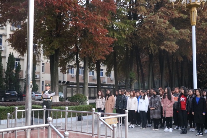 国旗招展,国歌嘹亮。11月19日清晨,小说狂人 在行政楼前举行“奋斗青春”升国旗主题教育活动。党委副书记何晓坚、辅导员曹菁菁、2018级全体同学及我校国旗护卫队共同参加本次主题教育活动。活动由国旗护卫队杜娟主持。