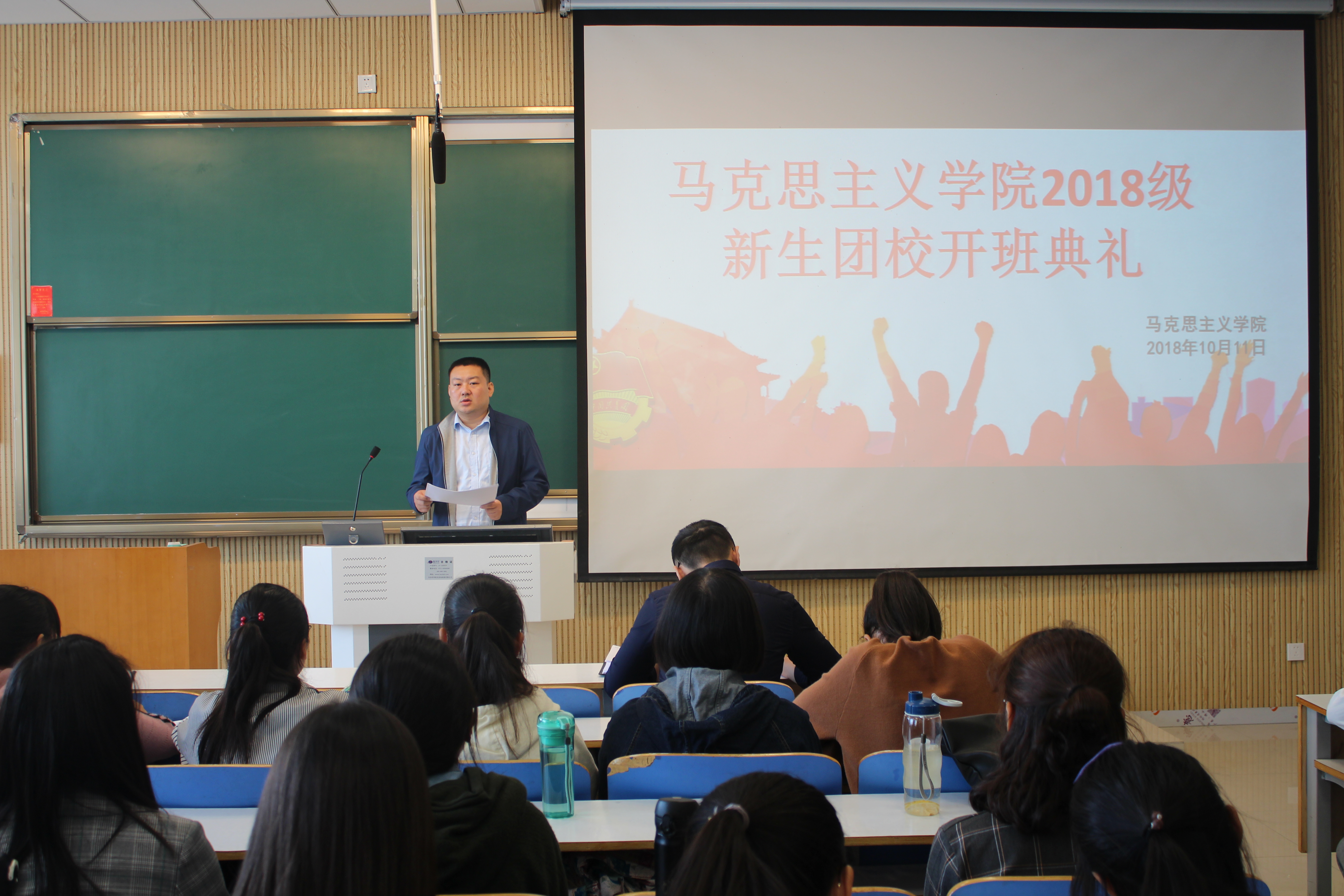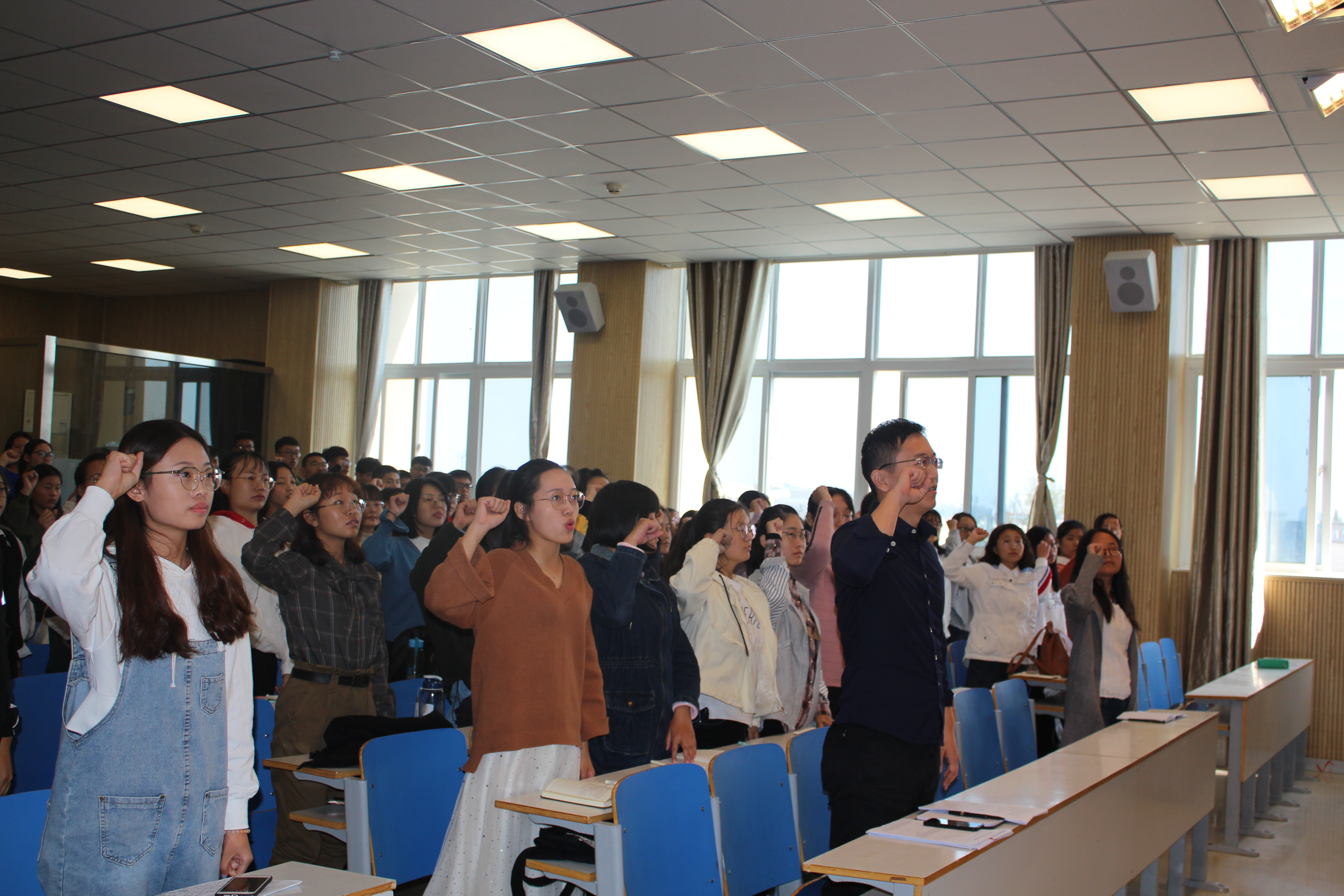 会上,何晓坚为2018级团员们上了团校第一课。他以习近平总书记“7·2”重要讲话为依托向与会团员提出几点要求。一、要以习近平总书记“7·2”重要讲话精神为统领,全面准确学习领会团的十八大精神,了解团知识,增强团意识;二、要深刻领会党中央关于青年工作的重要要求,坚持政治建团、从严治团,把习总书记关于青年工作的重要思想落实到团工作中去;三、深刻领会党中央关于切实推进全面从严治团的重要指示,坚定理想信念,提高工作能力,锤炼优良作风;四、要深刻领会党中央对强国时代青年的殷切期望,作为新时期共青团员,要将自身使命和国家荣誉紧密联系,坚定传承中国道路、中国精神、中国力量;五、要深刻领会党中央关于新时代共青团职责使命的重要论述,共青团员作为党的助手和后备军,要切实增强政治性、先进性、群众性,努力成为社会主义建设者和接班人。接着,曹栋就团课学习对大家作出具体要求,团课要准确落实“三会两制一课”制度,团员更要增强对团的理论知识的学习,从严要求自己,积极完成上级团组织的任务,成为一个有理想有担当的青年,保持团员应有的精神面貌。最后,2018级思想政治教育二班团支书黄子晋带领大家重温入团誓词。