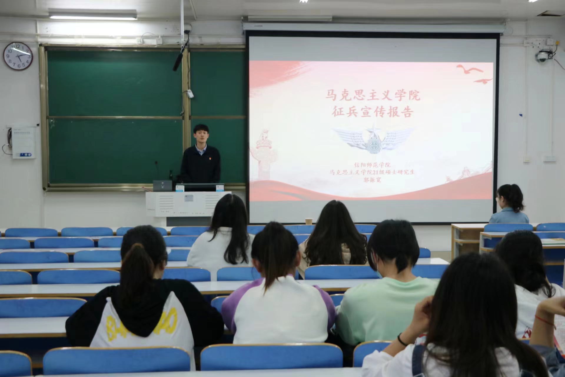 志存高远砺青春,建功立业赴军营。为进一步做好国家征兵政策宣传,将征兵工作融入立德树人教育环节,5月26日下午,小说狂人 在社科楼514教室召开征兵入伍宣讲会,团委老师高小佳、专职辅导员沈海蓄、优秀退伍大学生代表郭振宽和2019级毕业生共同参与此次宣讲会。会议由团委老师高小佳主持。