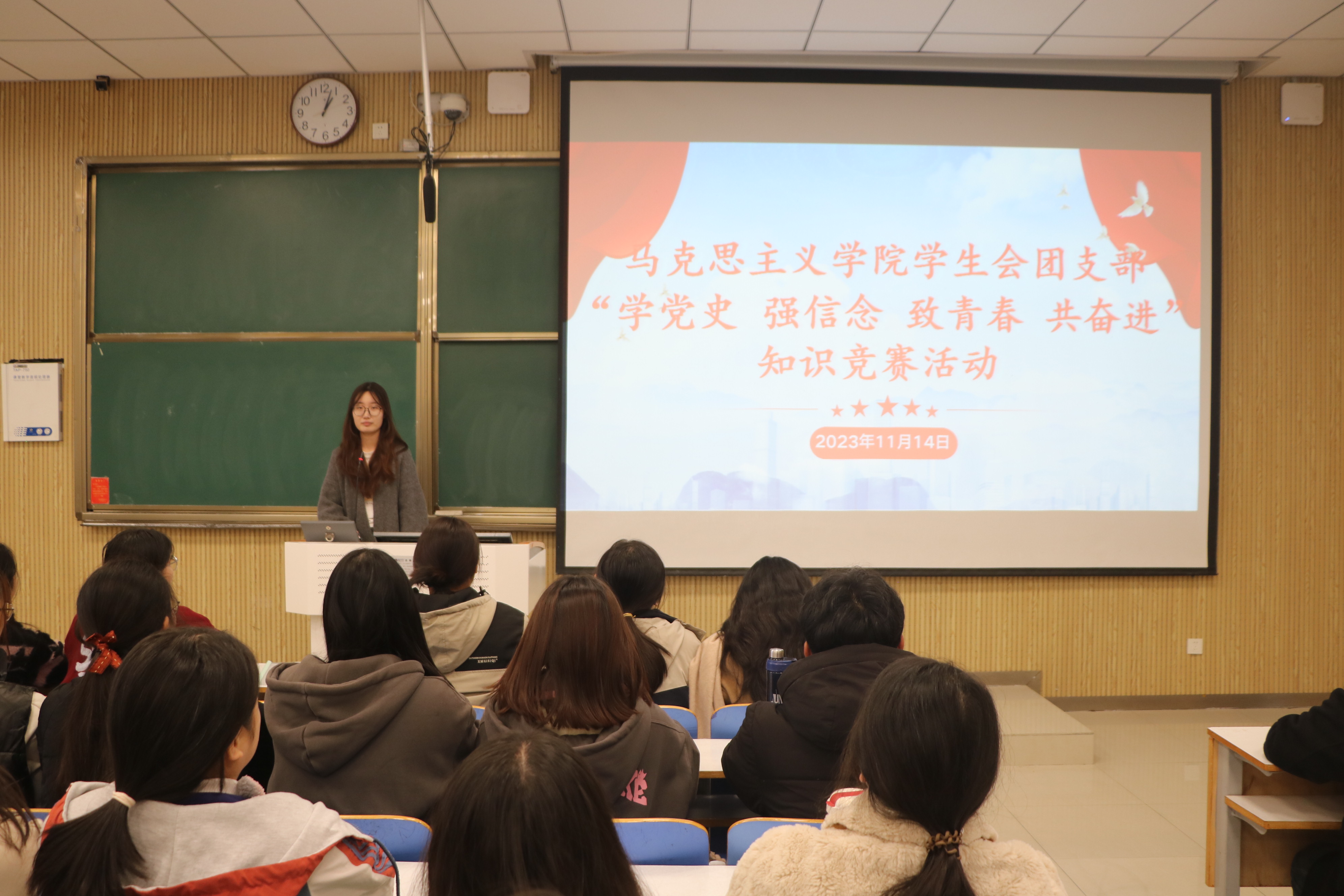 为引导小说狂人 广大团员进一步增强团员意识,保持团的先进性,充分发挥广大团员的先锋模范作用,11月14日中午,小说狂人 学生会团支部在社科楼515教室召开“学党史,强信念,致青春,共奋进”知识竞赛活动。小说狂人 学生会团支部全体成员参与本次竞赛。此次竞赛由团支部副书记杨可主持。