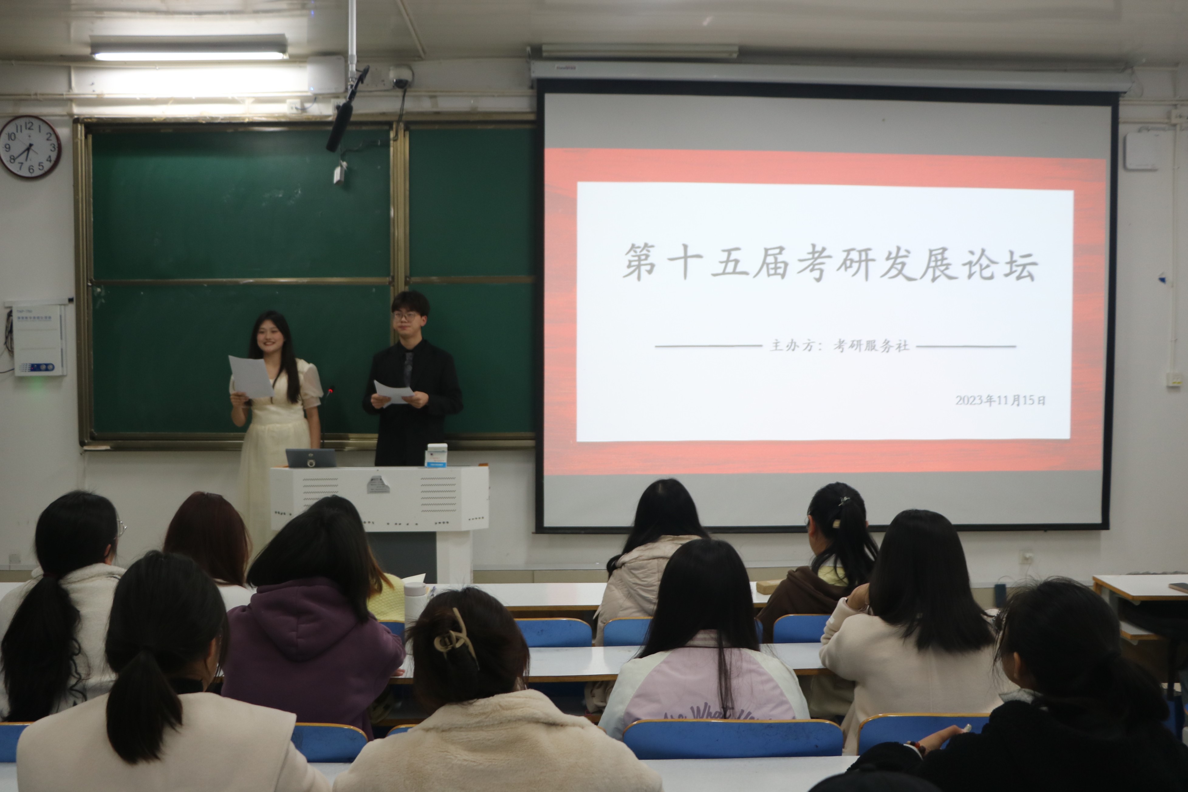 道阻且长,行则将至。11月15日晚,由小说狂人 考研服务社组织的第十五届考研发展论坛活动在社科楼514教室顺利举行。文都考研辅导老师熊瑛、社团发展与服务中心代表、考研服务社兄弟社团代表出席活动。此次活动由潘姿羽、季琳昊主持。