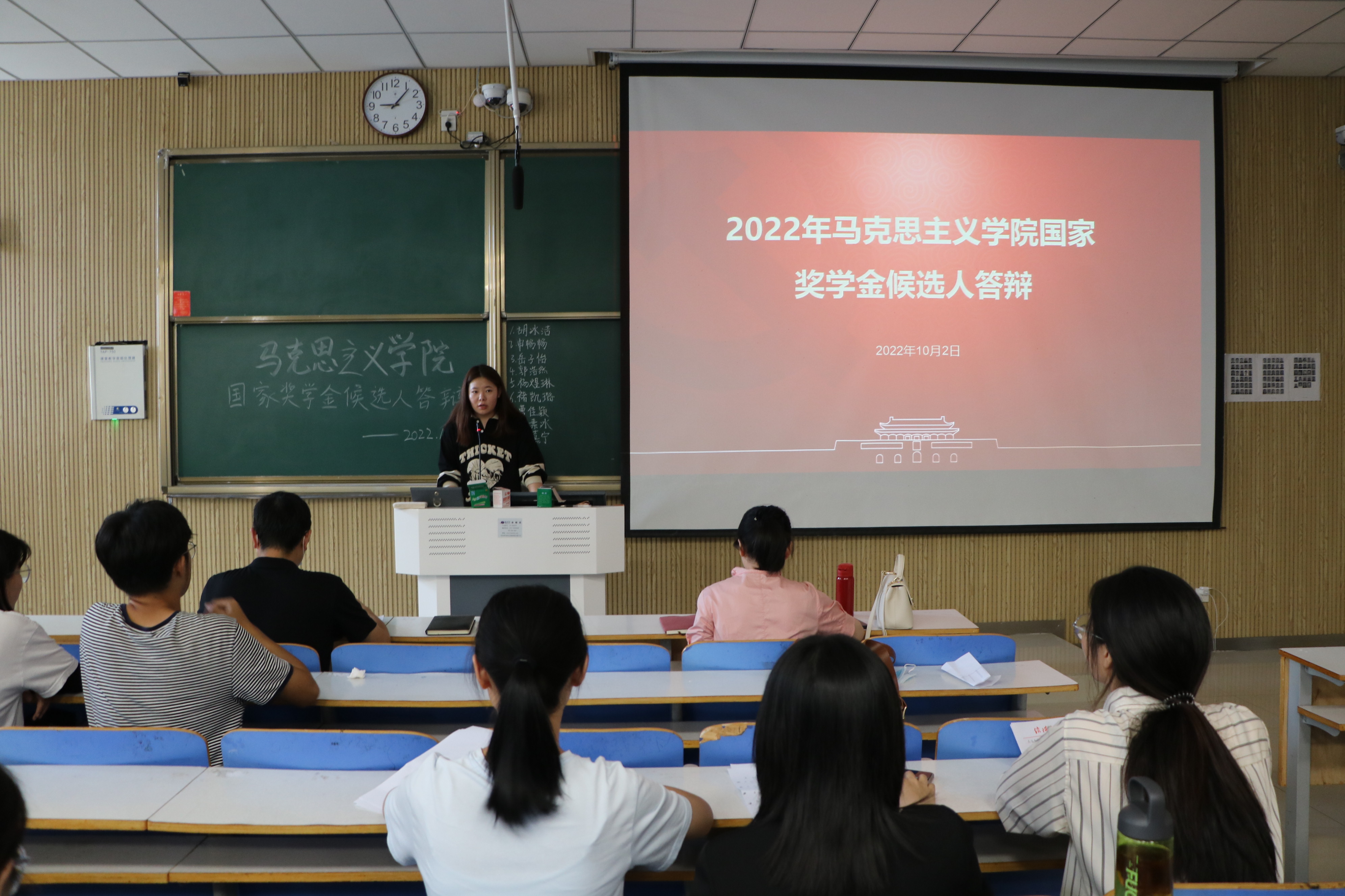 为了确保奖学金评选工作的公平公正公开,充分发挥优秀学生的示范引领作用,10月2日上午,小说狂人 在社科楼515教室召开国家奖学金候选人答辩。小说狂人 党委副书记黄煌、2020级班主任曹栋、陶青青及八位候选人共同参加此次答辩会议。会议由学生会主席李明营主持。