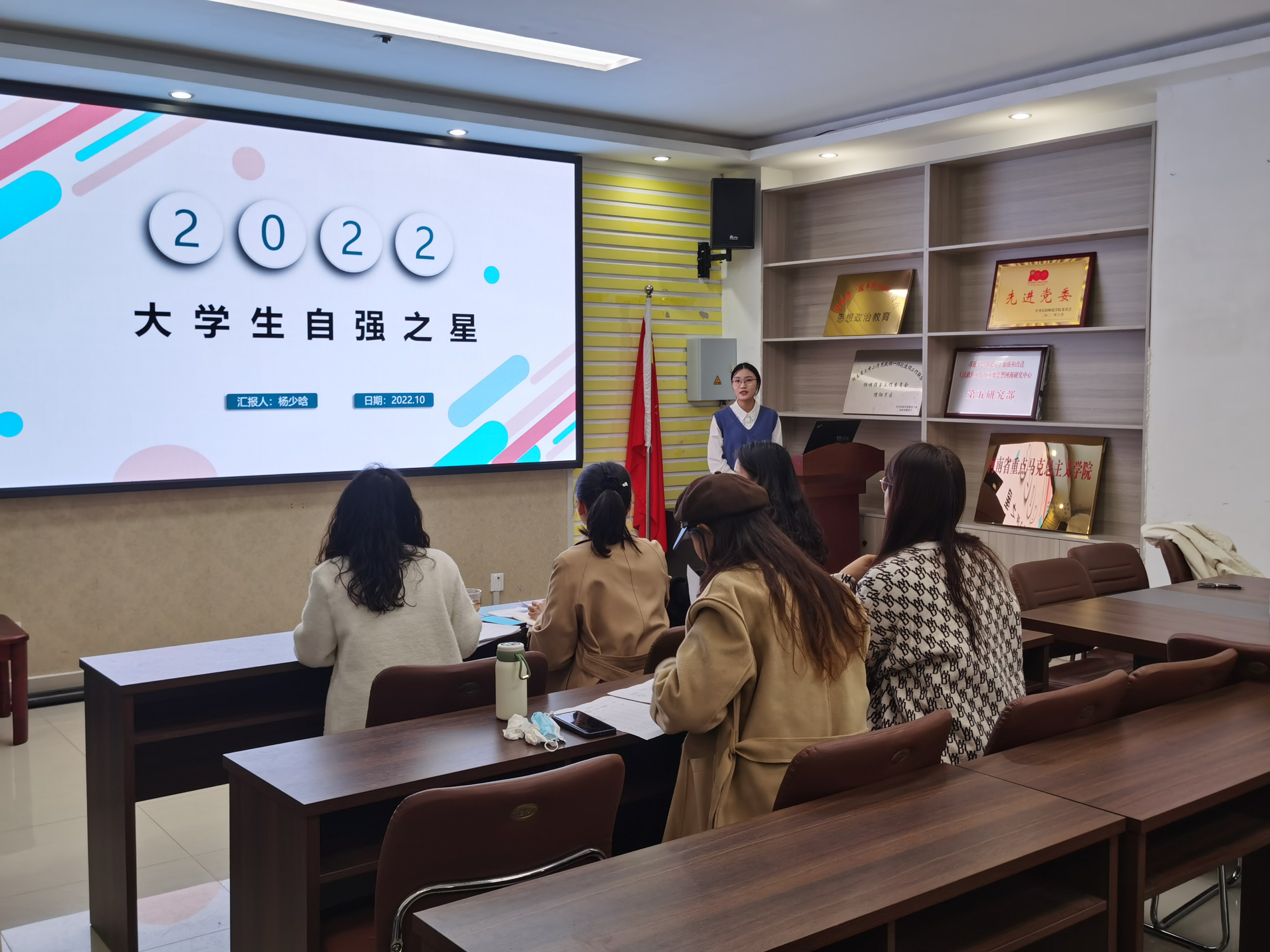 为深入贯彻落实习近平总书记关于青年工作的重要思想,鼓励青年践行“强国有我”的青春宣言,10月26日上午,小说狂人 在社科楼323会议室举办了“大学生自强之星”候选人评选活动,小说狂人 团委书记陶青青,专职组织员任婷,班主任王明园、杨春艳、吴梦云出席活动并担任评委。活动由组织部负责人韩奕晨主持。