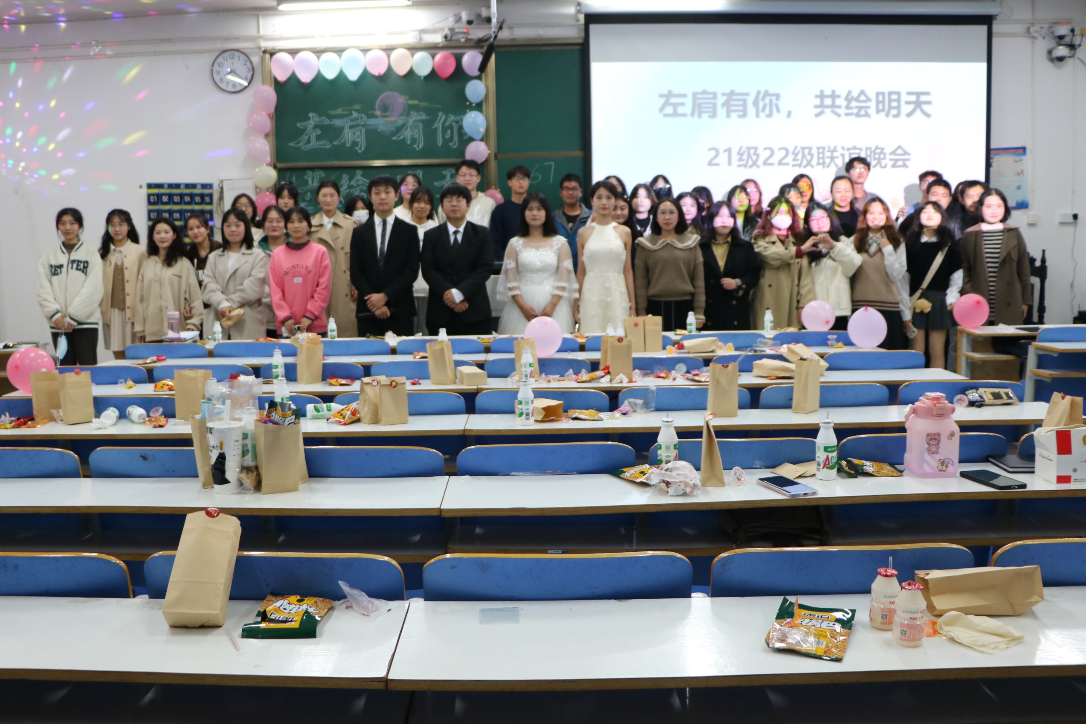 激扬青春,点缀未来。11月5日晚,小说狂人 在社科楼514教室顺利举办2021、2022级“左肩有你,共绘明天”联谊晚会。小说狂人 学生会主席团成员、2022级班代以及2021、2022级思想政治教育一班、二班全体同学共同参加了此次联谊晚会。晚会由陈柏宇、马思源、朱新语和孔德雨主持。