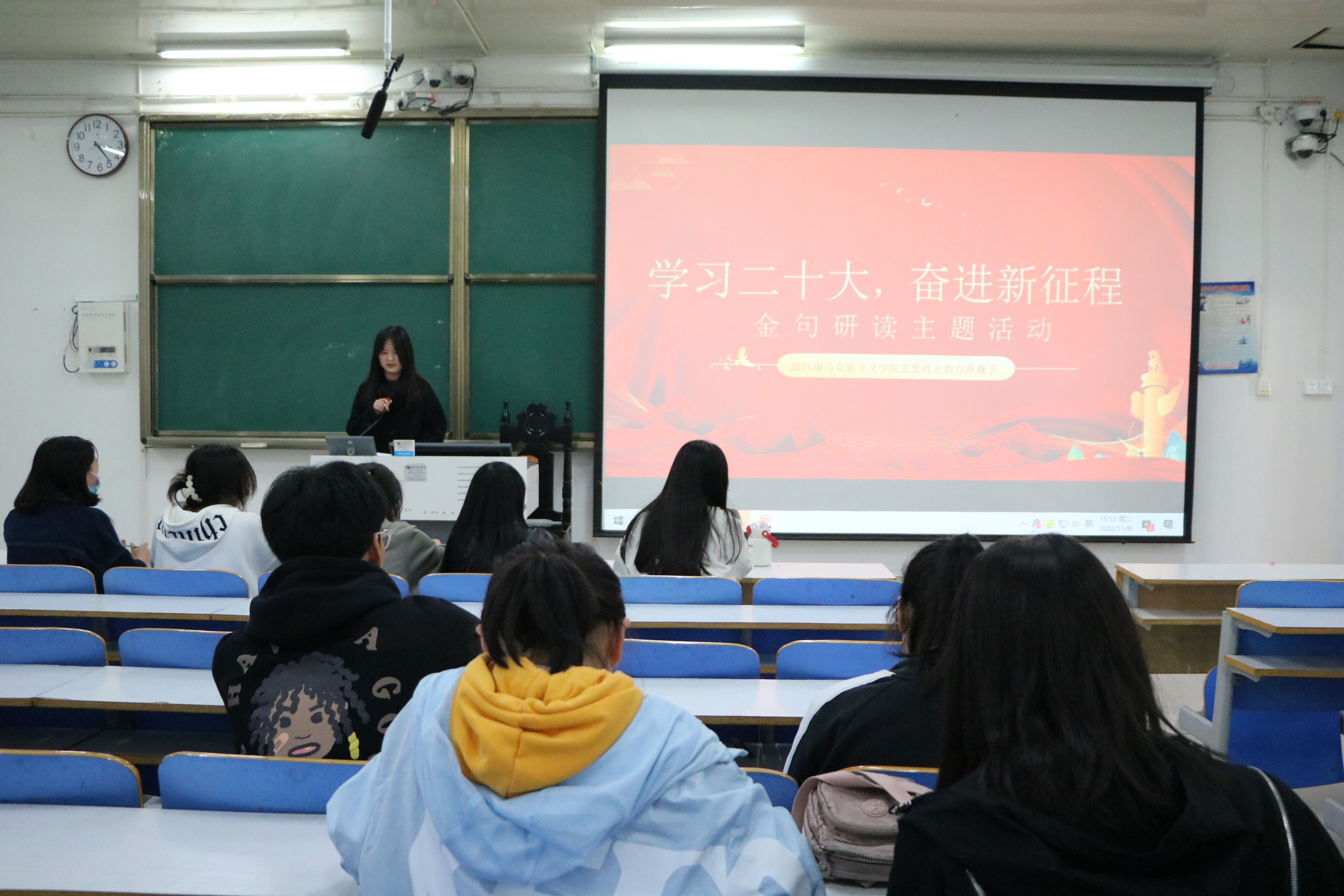 本次活动通过金句研读的方式,敦促我校学子深入学习党的二十大精神,唱响爱国、团结、矢志不渝跟党走的青春主旋律,引导同学们坚定正确政治方向,加强政治理论学习,将爱国之志转化为实际行动,让青春在全面建设社会主义现代化国家的火热实践中绽放绚丽之花。(小说狂人 鲍梦瑶 张明月/供稿 陶青青/审核)