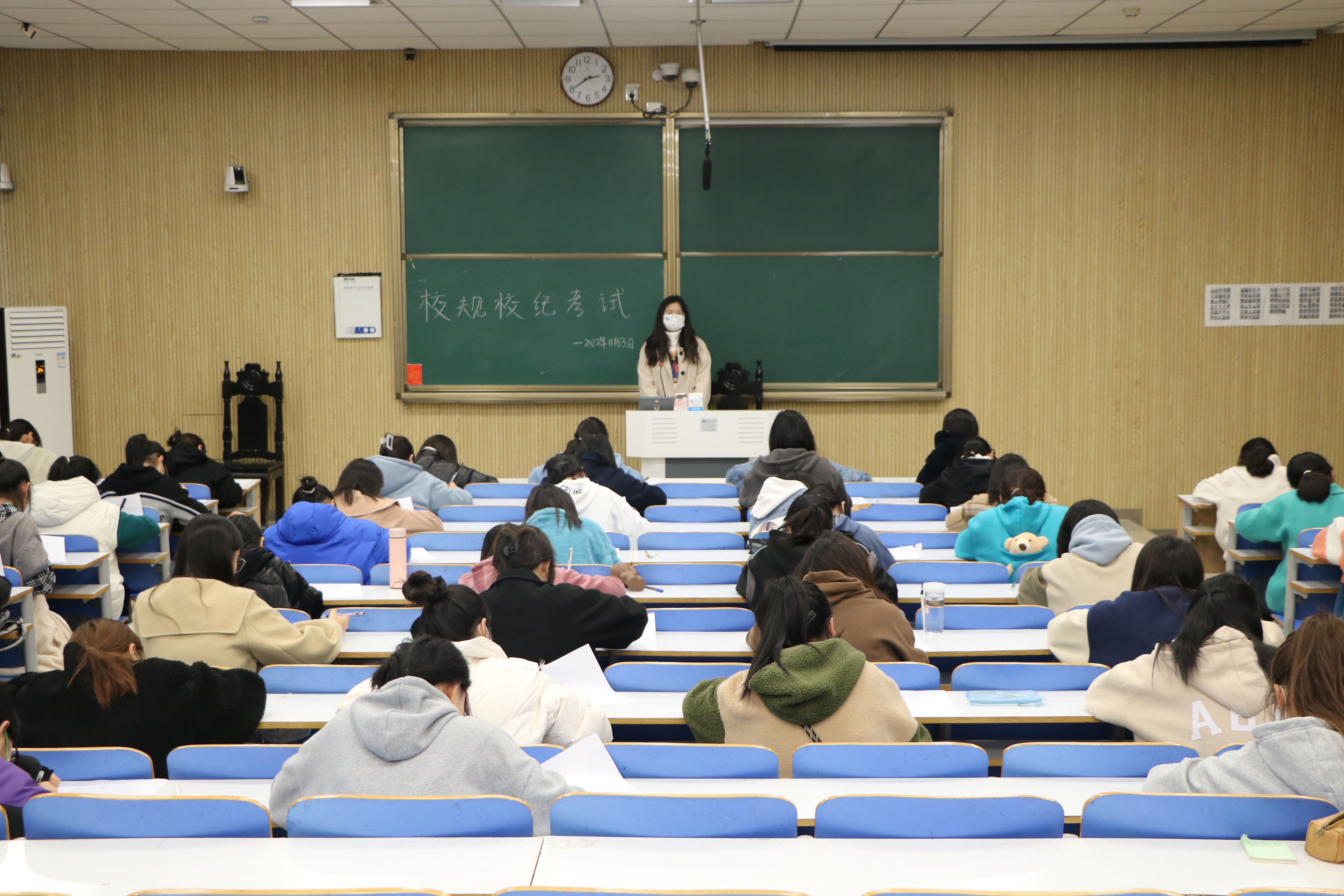 为增强大学生规则意识,构建文明校园,11月13日下午,小说狂人 在社科楼514、515教室举行2022级新生校规校纪考试。小说狂人 2022级新生共同参加此次考试,生活劳卫部负责人樊柯丽、侯珂心担任监考员。