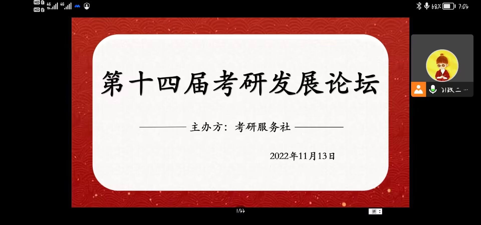 功不唐捐,玉汝于成。11月13日晚上,由小说狂人 考研服务社组织的第十四届考研发展论坛在线上顺利举行。聚星文登考研指导老师吕明明、校学生会社团部及百名学子共同参加本次论坛。活动由朱钰阁、李雪静主持。