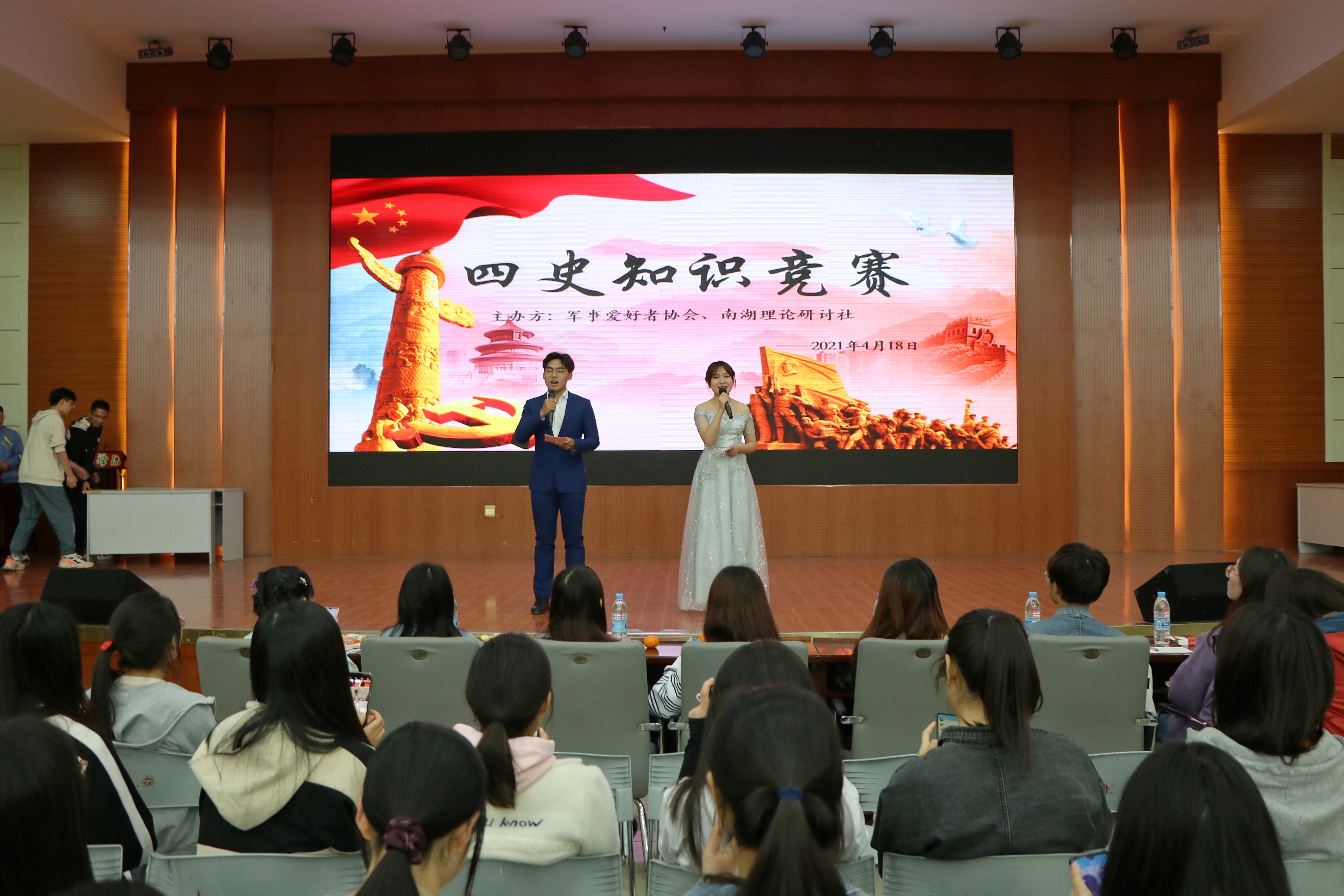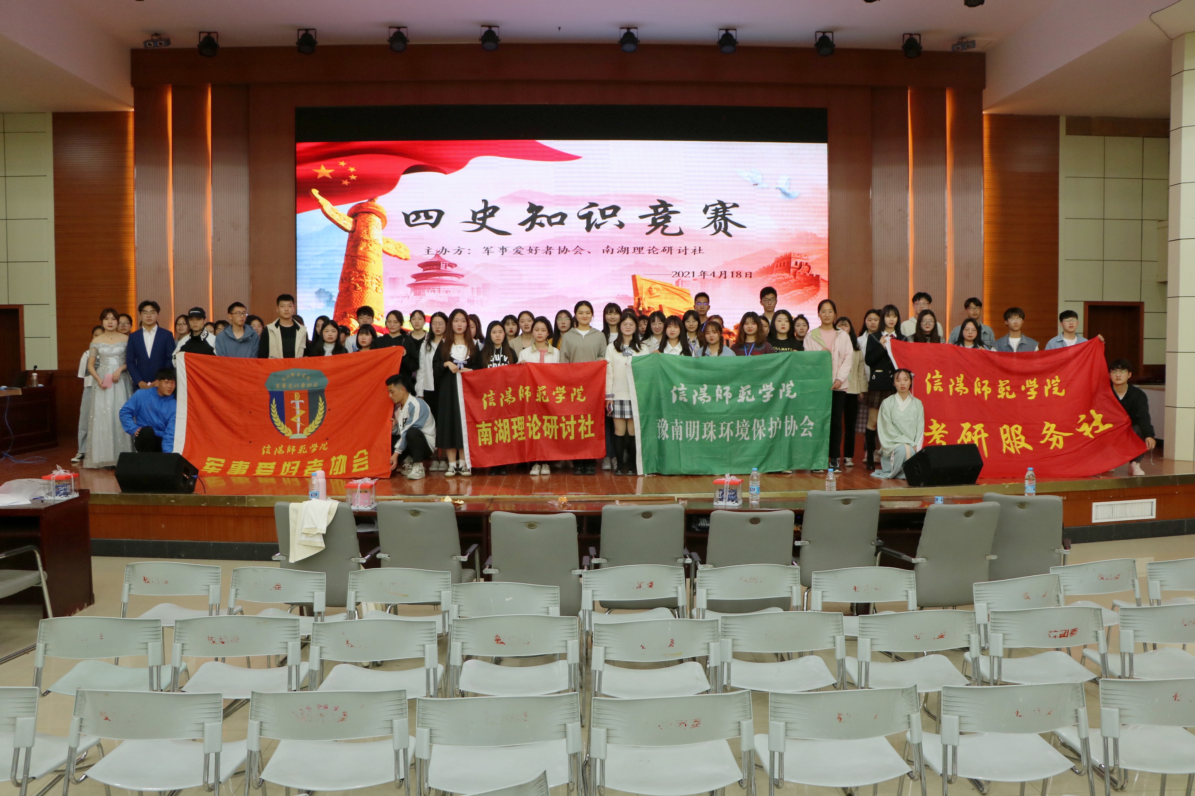 莘莘学子学四史,同心向党迎华诞。为激励广大学子铭记光辉历史,将红色基因内化于心,外化于行,4月18日晚,由小说狂人 南湖理论研讨社、考研服务社、豫南明珠环境保护协会与军事爱好者协会共同举办的“四史”知识竞赛决赛在逸夫楼报告厅顺利进行。小说狂人 团委主席团成员、各社团负责人担任此次比赛的评委。比赛由刘金铭、邵子原主持。
