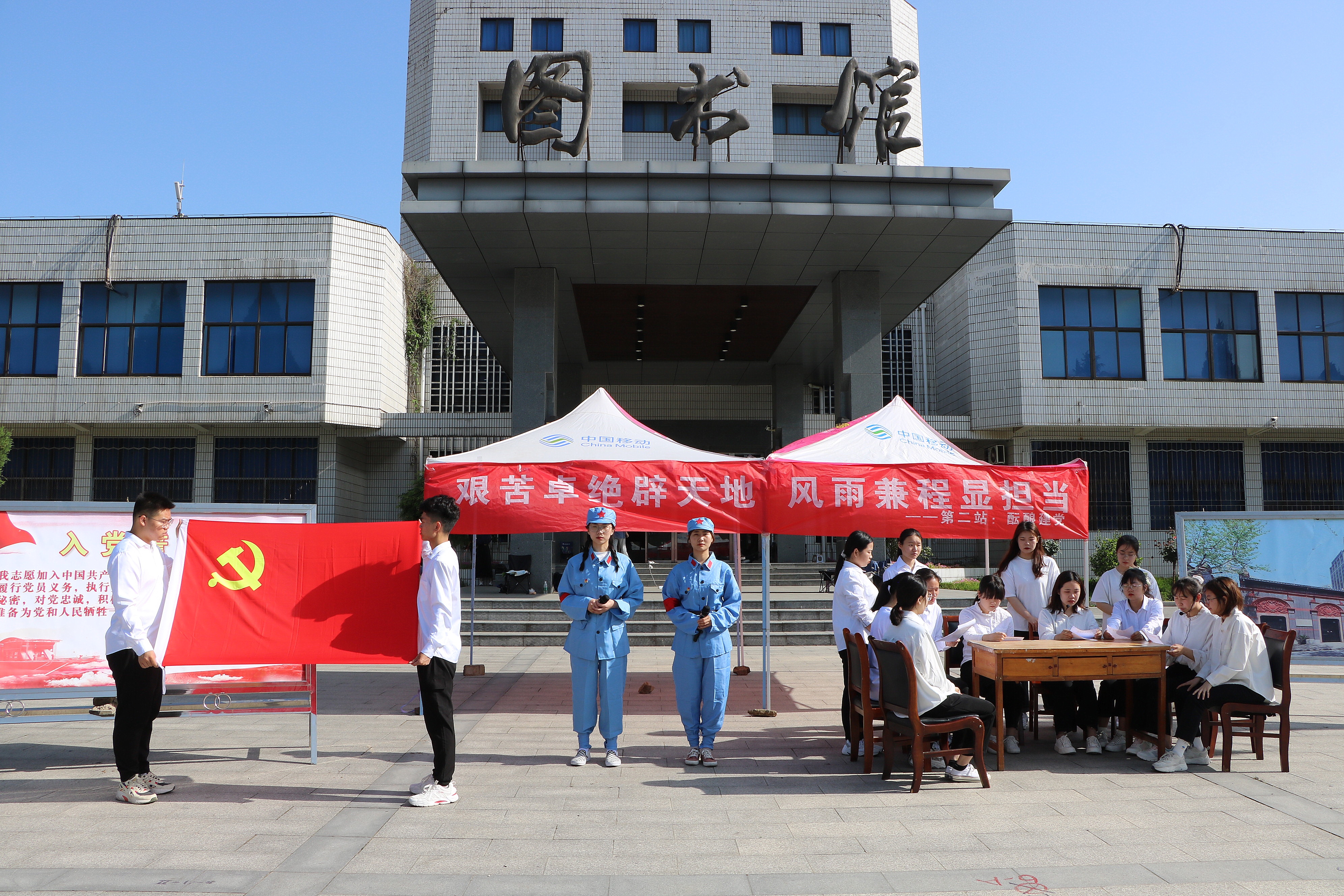 活动分别在学校樱花球场、青年广场、老图书馆、文心亭等地设置站点,配合着选取的12个具有代表性的历史事件和时间节点,串联起一部波澜壮阔的百年党史,内容涵盖五四运动、酝酿建党、井冈山会师、万里长征、抗日战争等。其中,小说狂人 在老图书馆前设置的站点模拟了“酝酿建党”这一伟大历史事件,围绕“主持人讲解党的一大历史故事”、“回答党史问题”和“学习入党誓词”三个环节进行。主持人在讲解党的一大故事的同时,穿插着情景剧演绎和党史问答,生动形象的情景剧令人身临其境,增强了参与人员的体验感,加深了对党的一大的了解。最后,在主持人的带领下,参与人员共同学习入党誓词,现场气氛热烈。