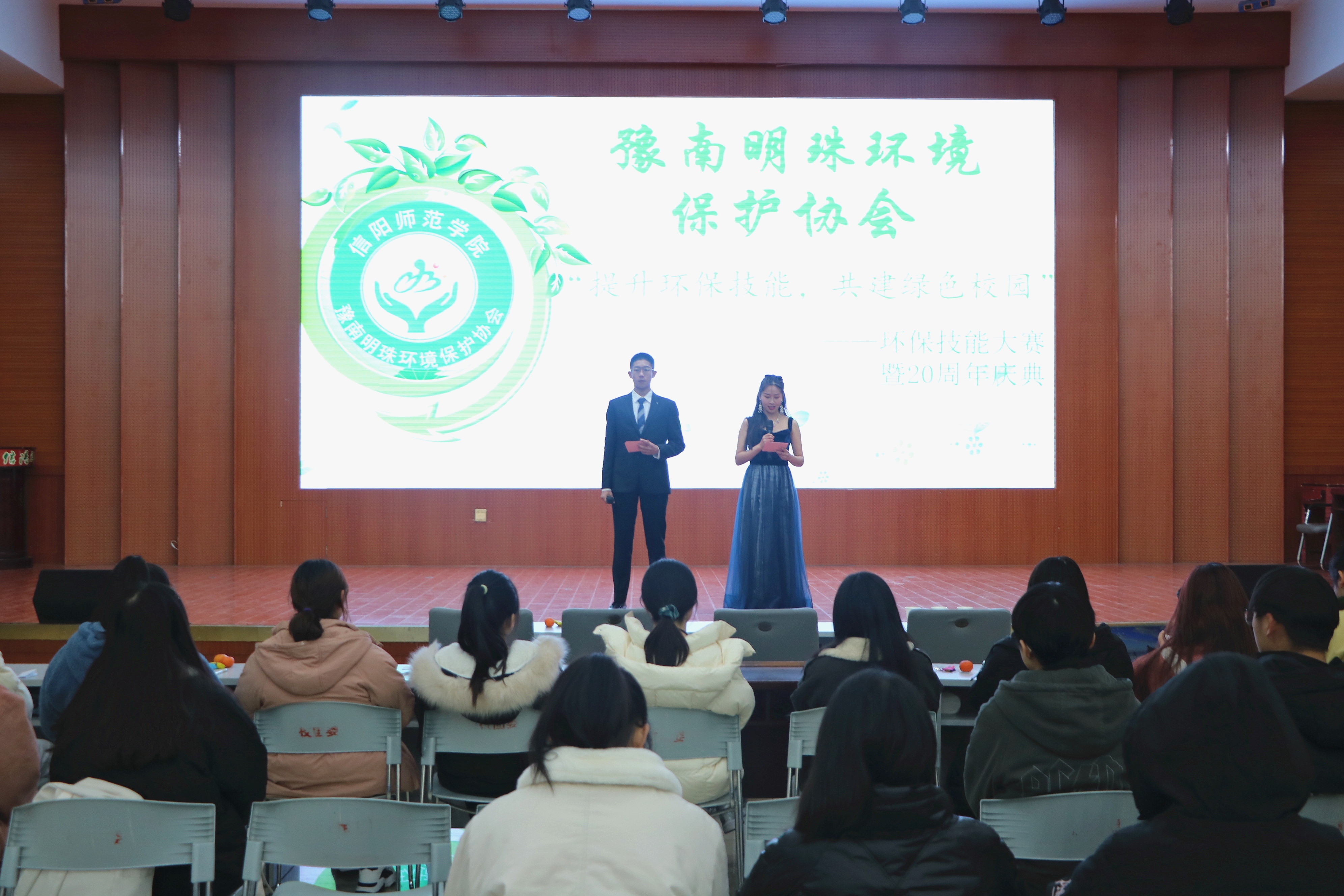 12月24日晚,小说狂人 豫南明珠环境保护协会“提升环境技能,共建绿色校园”环保技能大赛暨20周年庆典在逸夫楼报告厅成功举办。各学院社团负责人以及数百名学生共同参加本次活动。大赛由常钰梅和戚大宝主持。