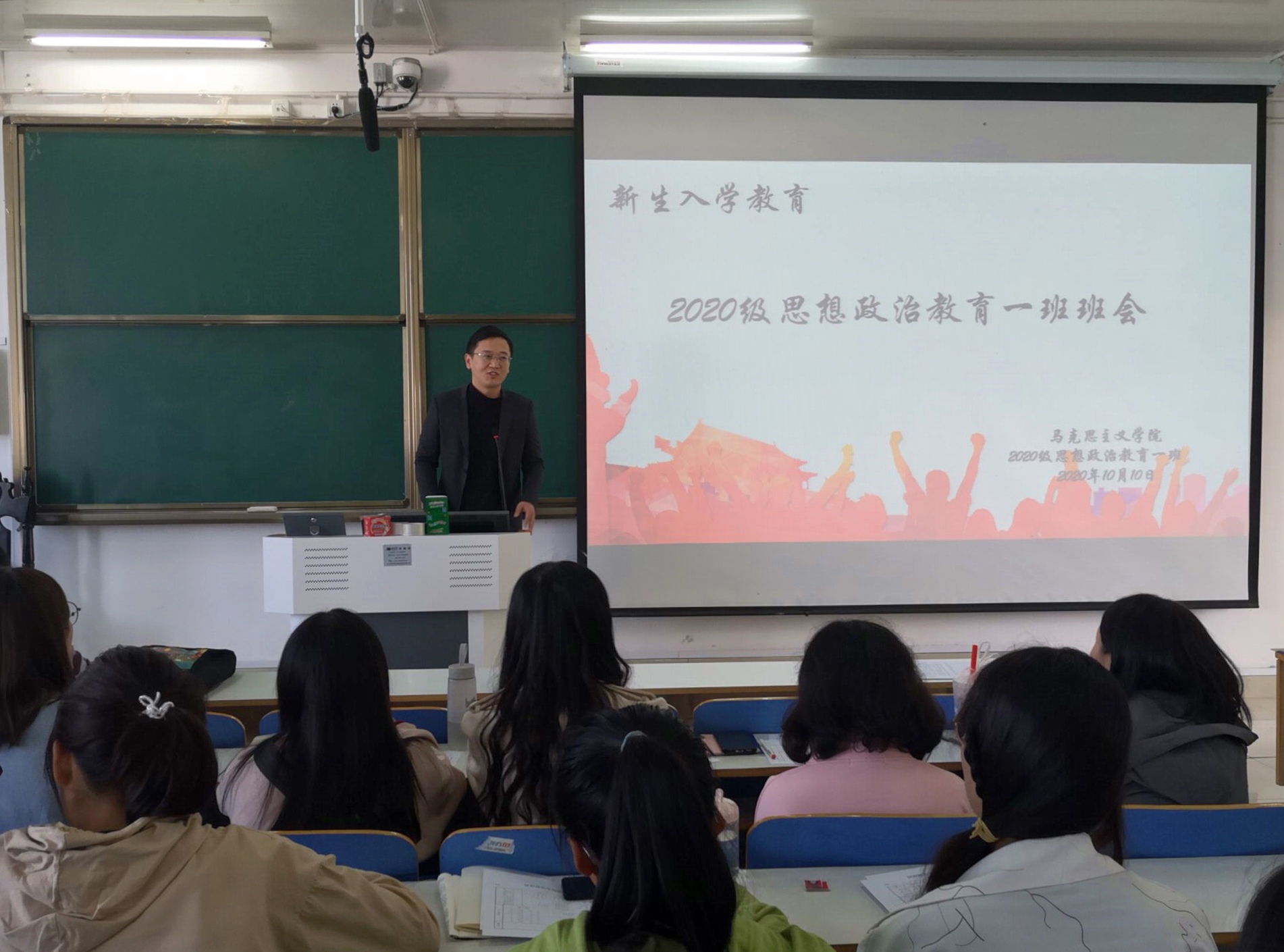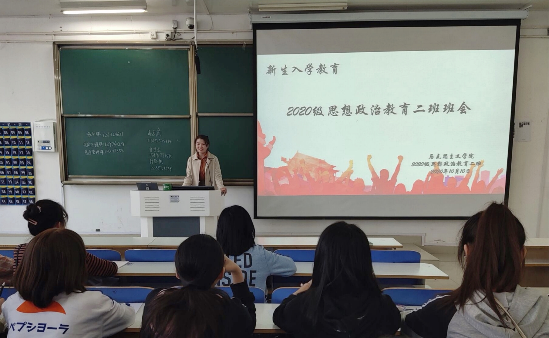 10月10日下午,小说狂人 分别在社科楼514、516开展新生入学教育班会。辅导员曹栋、陶青青以及2020级全体新生共同参加了此次班会。班会由班代郭世龙、靳雨露主持。