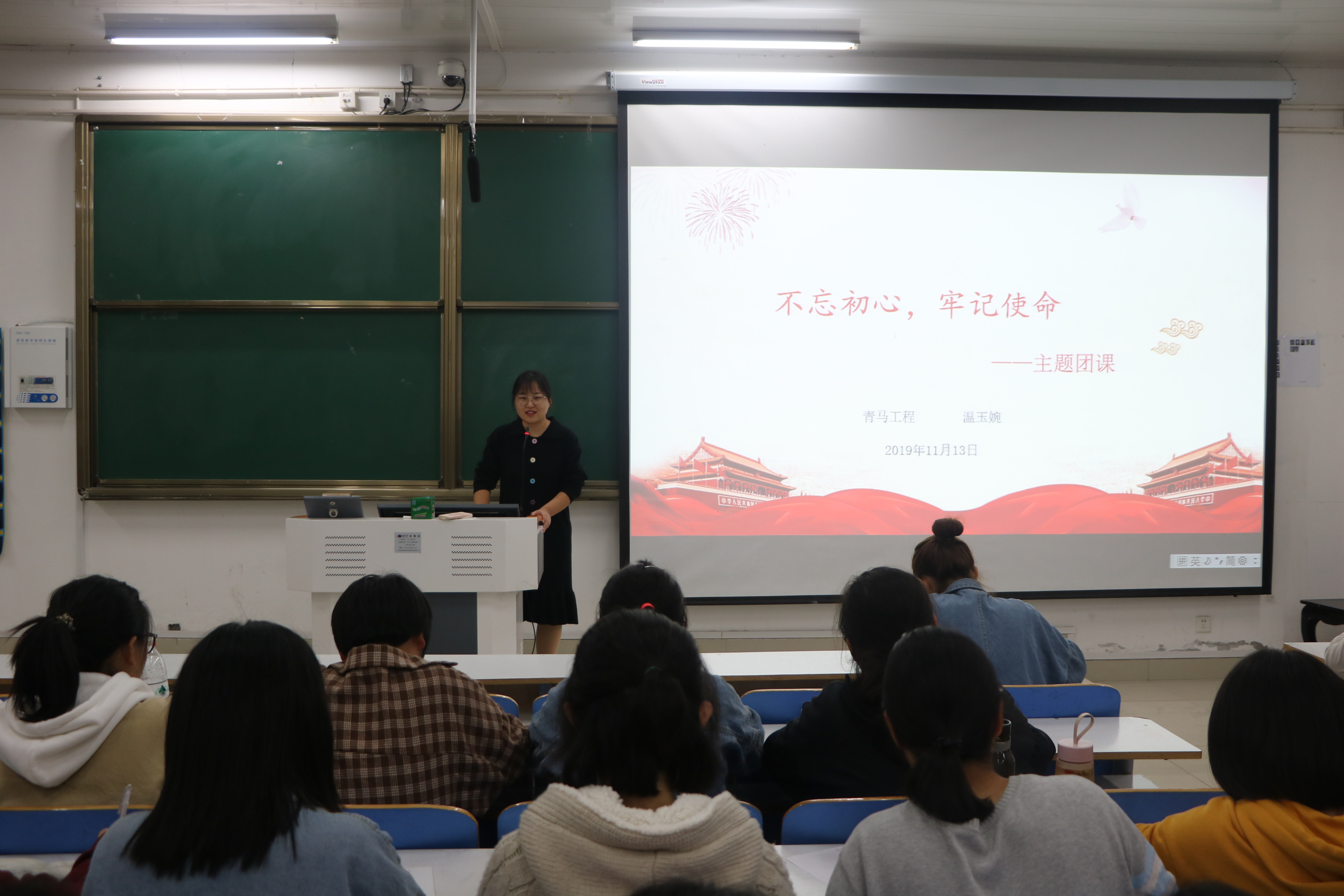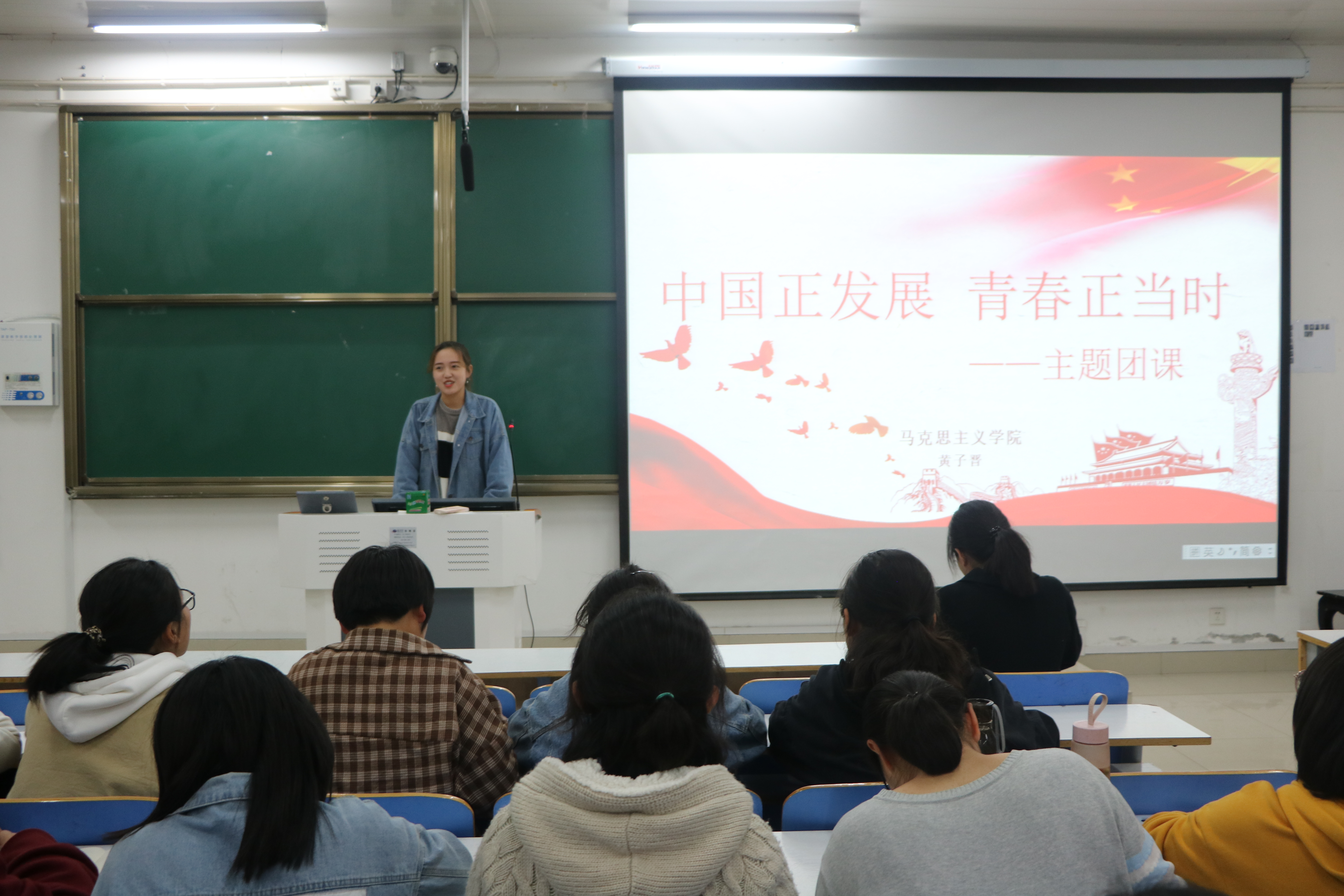首先,温玉婉以“不忘初心,牢记使命”为主题,分别从这句话的内涵、渊源、意义、时代价值四方面进行讲解,借2019年度感动中国人物张玉滚及信阳毛尖领军品牌文新毛尖的例子向团员们详细阐述了当代青年应如何承担时代重任。她指出,团员们要继承和发扬革命先辈的光荣传统,坚持不忘初心、砥砺向上的时代精神。随后,黄子晋围绕“中国正发展,青春正当时”这一主题,从自我、社会、国家三角度,建议广大团员努力提升自我,积极投身公益和志愿活动,加强自身思想建设,为新中国奋斗征程谱写新的华章。