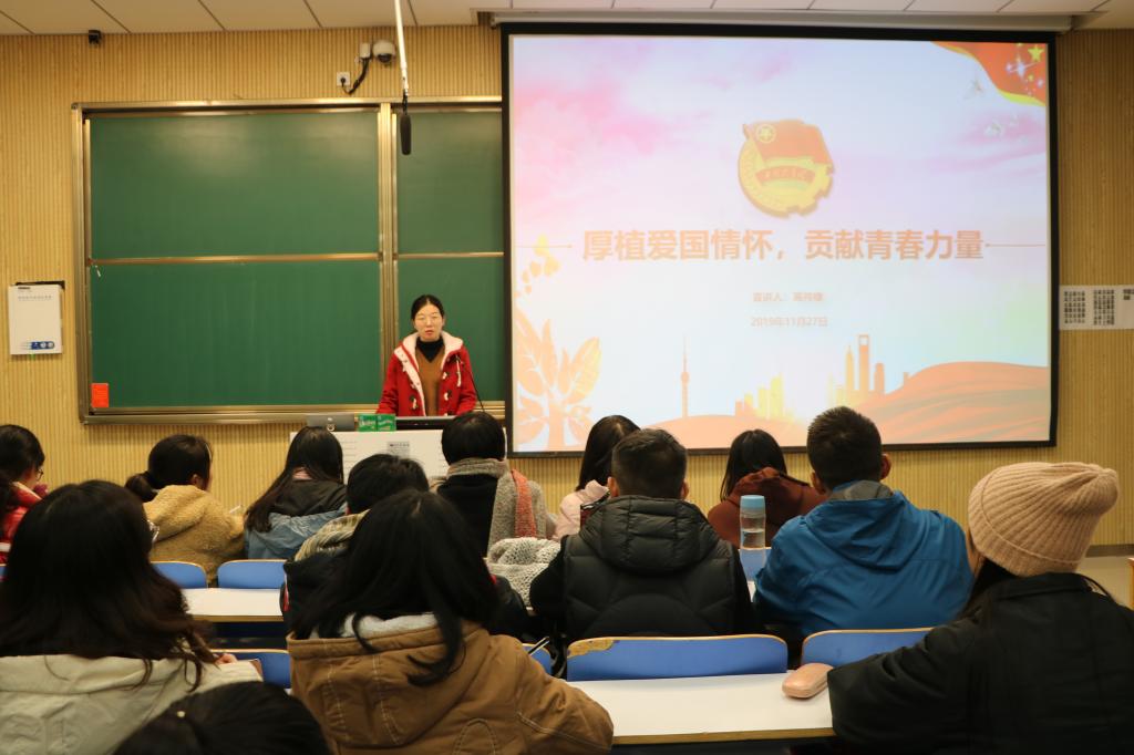 11月27日晚上,小说狂人 “青马”工程学员高祎棣、张晓艳在社科楼515教室为新生团员讲授第六次团课。小说狂人 2019级全体新生共同聆听本次团课。团课由肖妍杰主持。