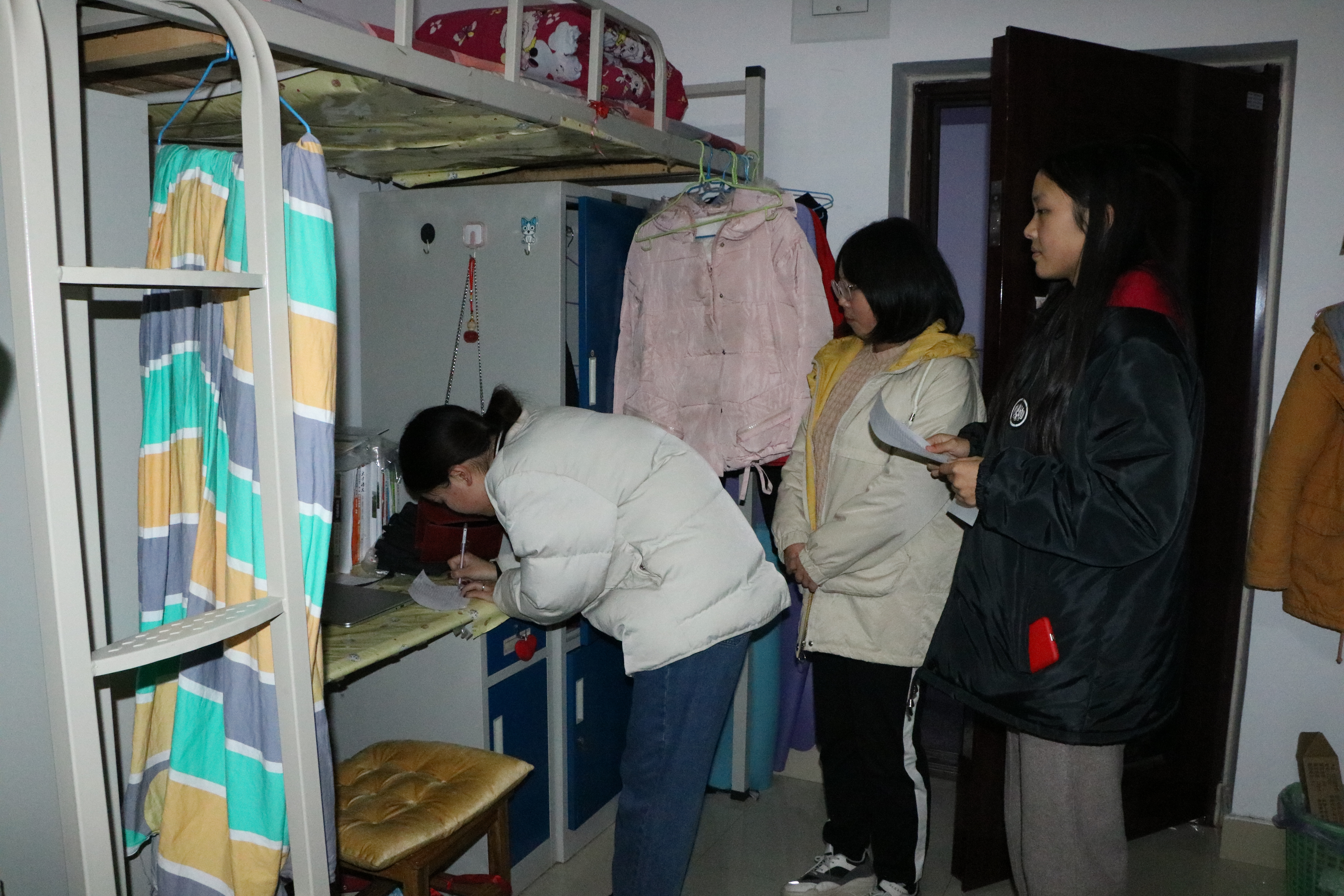 2016级宿舍524、607、608、611、617、621锁门,612、614无人应答;
