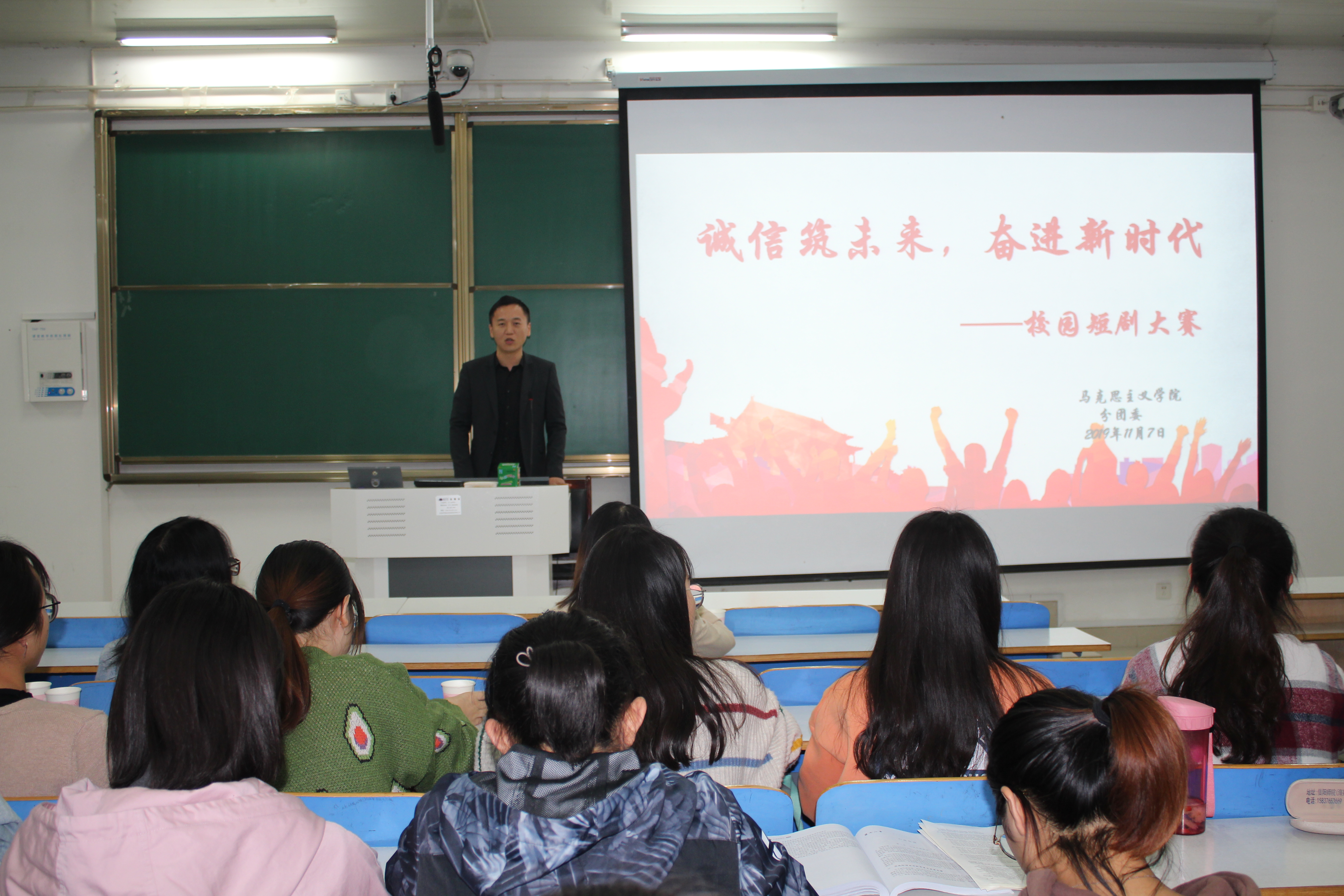 11月7日下午,小说狂人 在社科楼514教室举办了“诚信筑未来,奋进新时代”校园短剧大赛。小说狂人 团委书记曹栋,团委老师曹菁菁、陶青青,学生会主席团成员出席比赛并担任评委。比赛由学贷部魏子航主持。