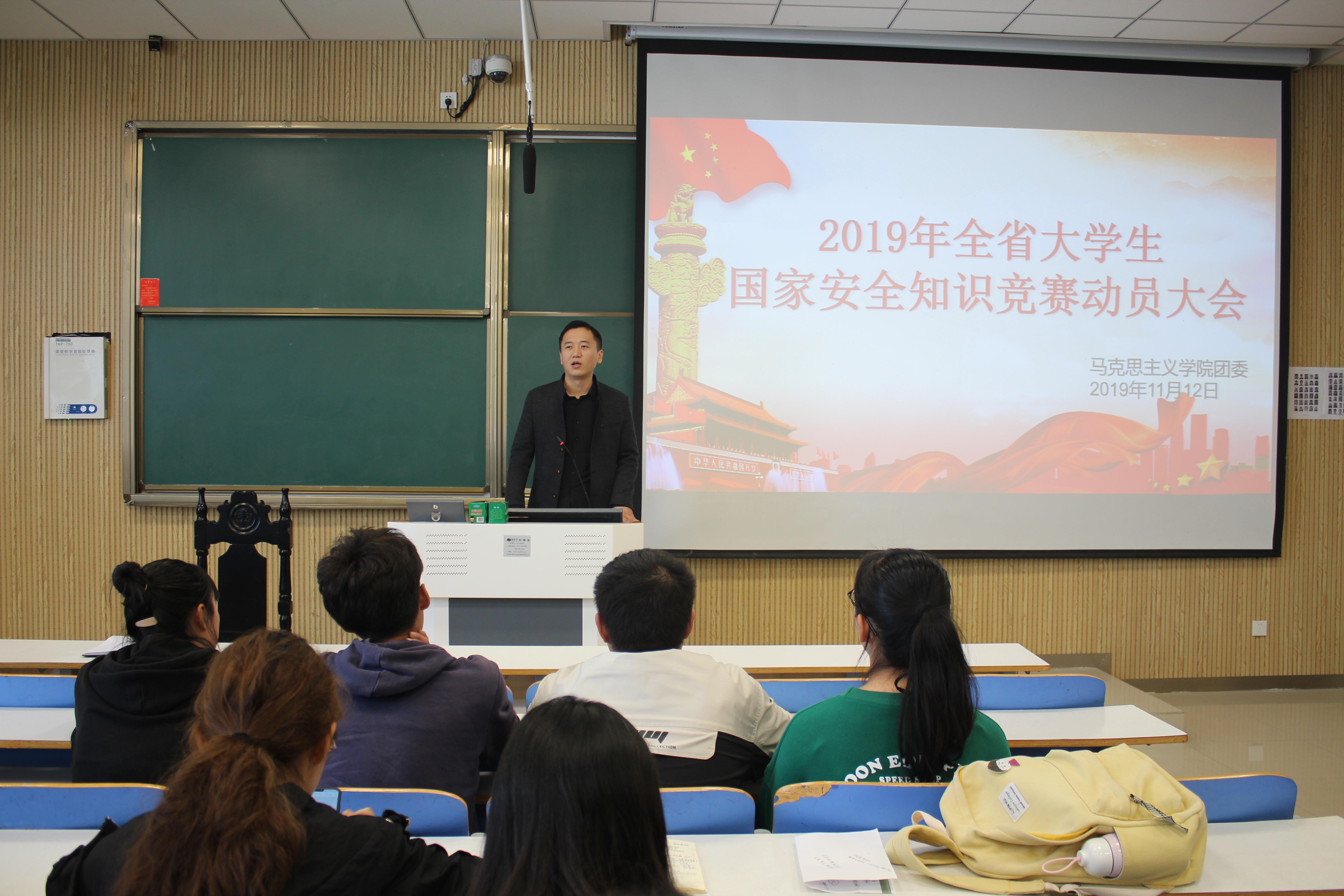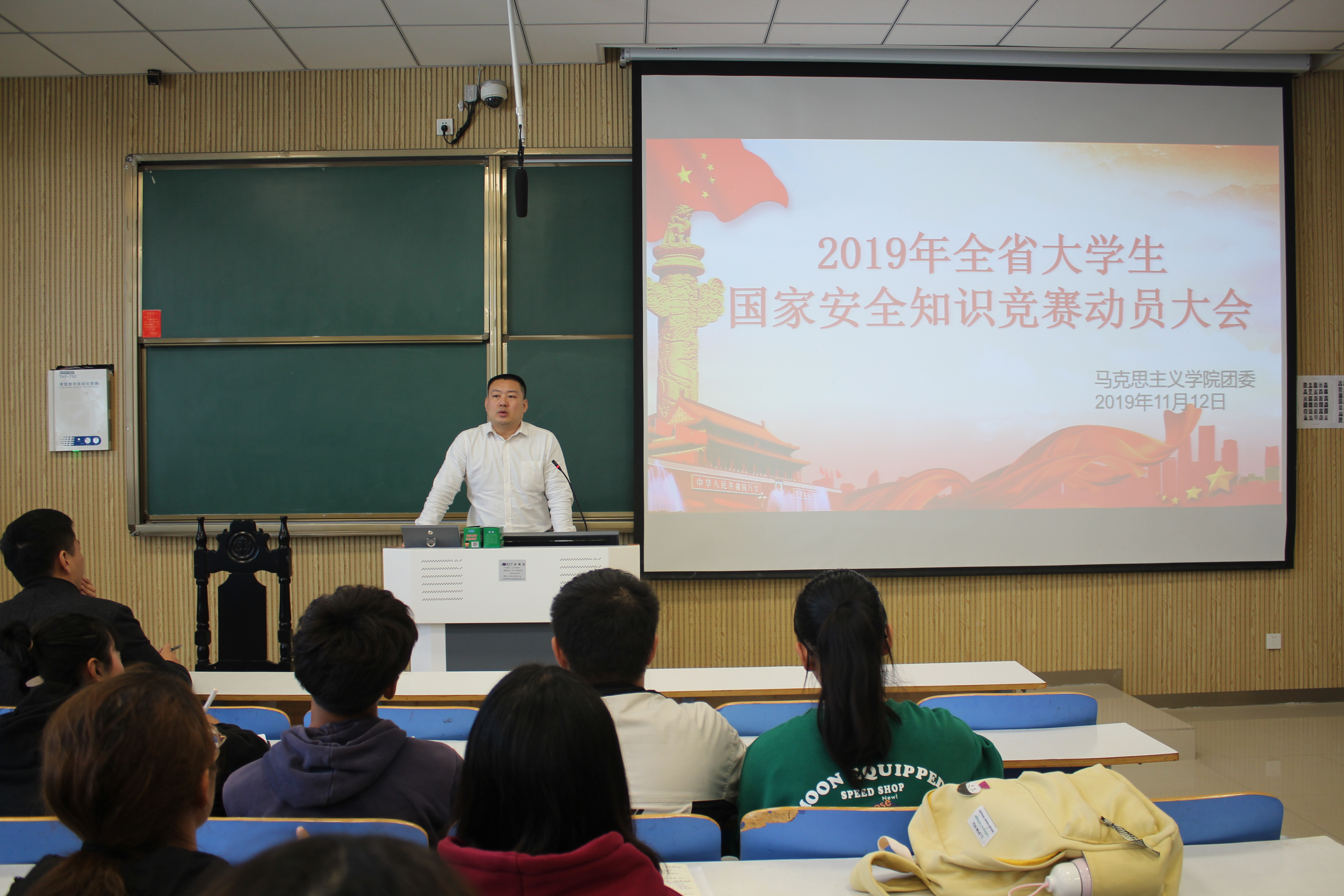 11月12日上午,小说狂人 团委在社科楼515教室召开2019年全省大学生国家安全知识竞赛动员大会。小说狂人 党委副书记何晓坚,团委书记曹栋,学生会主席团及各部门成员共同参加本次动员大会。会议由秘书处李静主持。