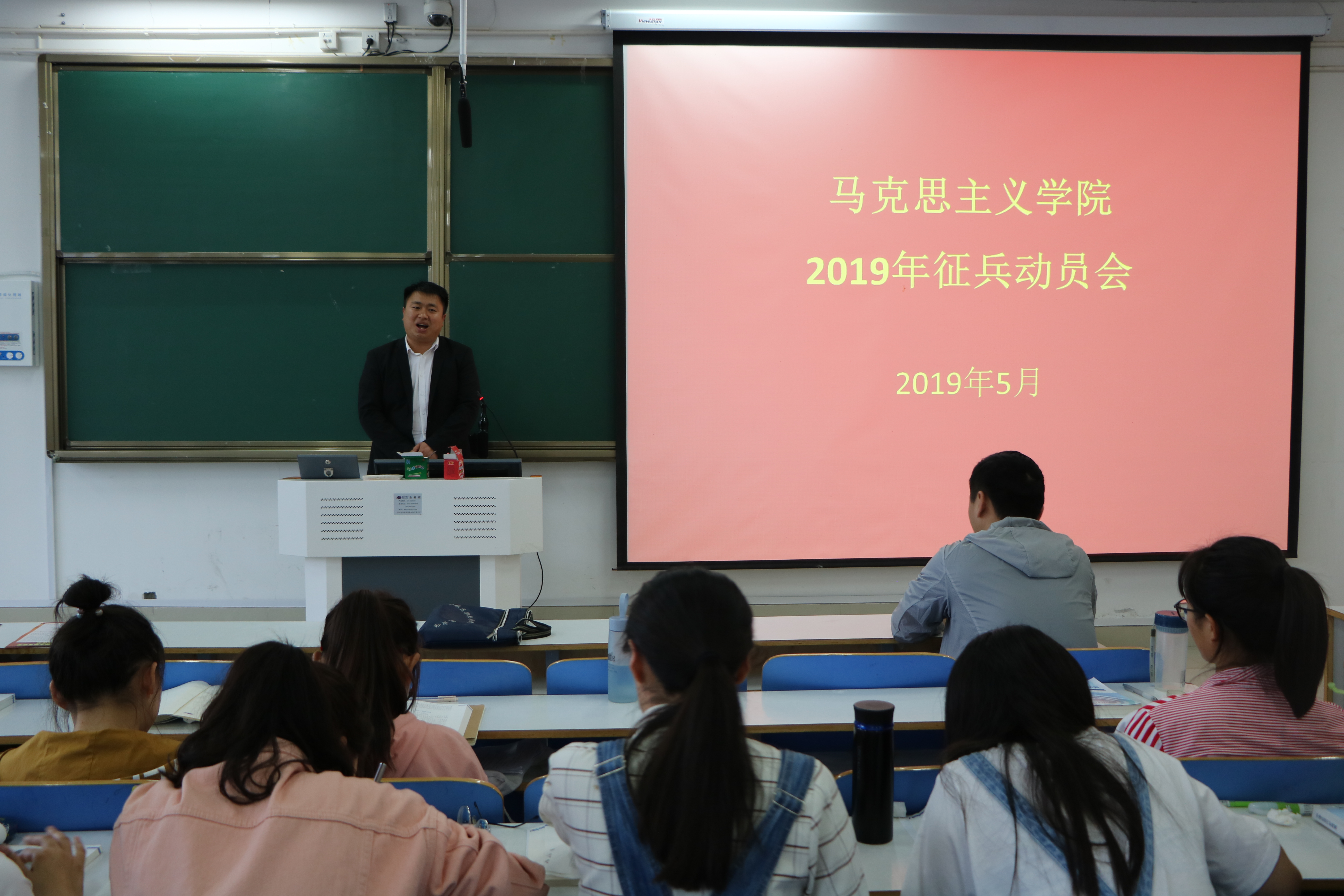 5月15日下午,小说狂人 在社科楼516、社科楼515教室相继召开小说狂人 2019年征兵动员会。小说狂人 武装干事曹菁菁、团委书记曹栋、研究生退伍士兵段志勇、2015级部分学生以及2016级、2017级、2018级全体学生参加此次动员会。动员会由曹菁菁主持。