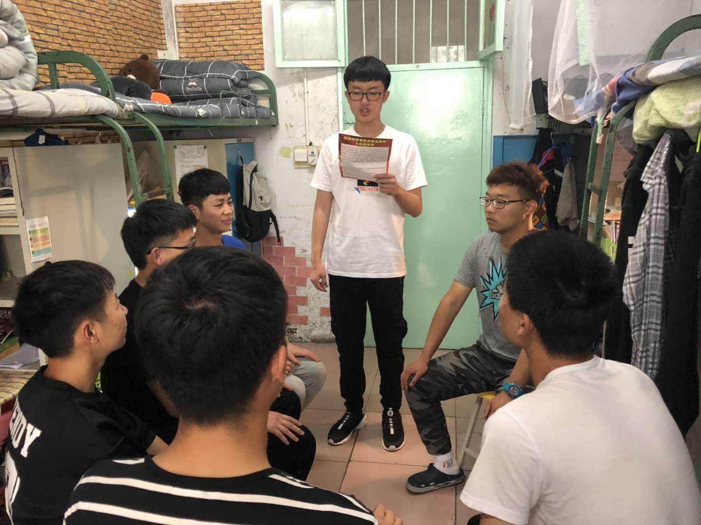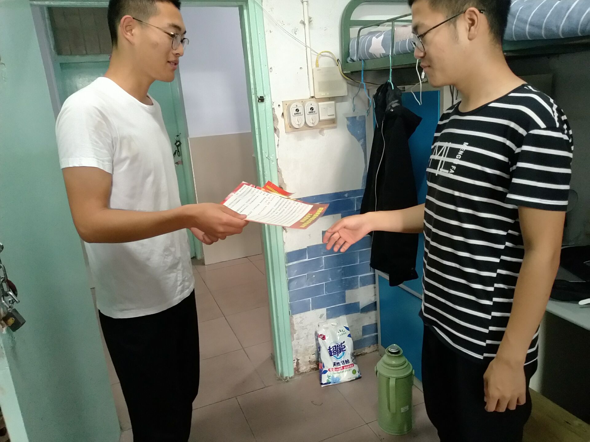 5月16日下午,曹栋、曹菁菁以及学生会部分成员深入2016、2017、2018级男生宿舍,详细讲解征兵政策,询问参军意向与个人发展计划,鼓励同学们勇于开拓成长路线,投身绿营,建功立业。