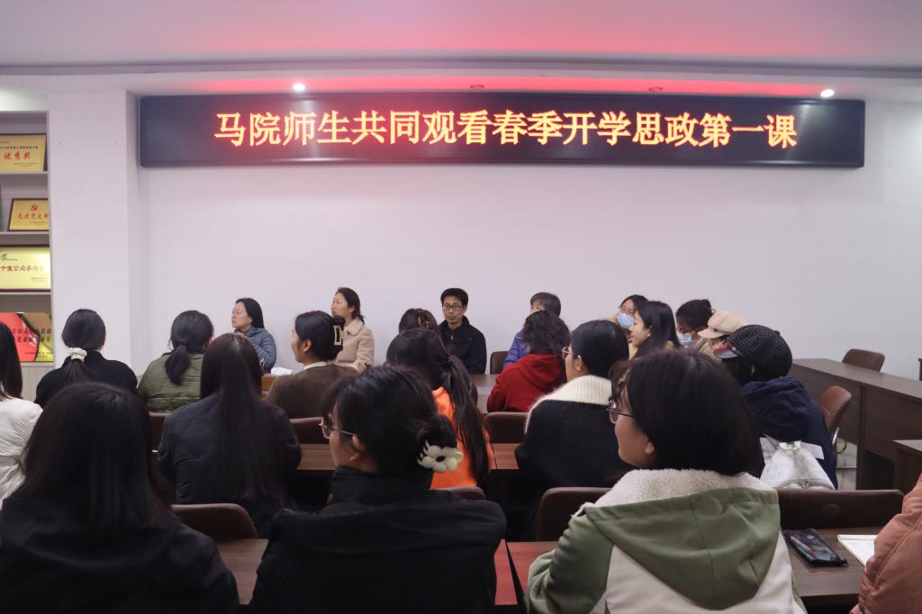 为学习贯彻习近平文化思想和习近平总书记关于思政课建设的重要论述,统筹推进全省大中小学思政课一体化建设和文化育人工作,引导广大师生深化对“两个确立”决定性意义的认识,省委教育工委、省教育厅于3月9日晚上开展2024年河南省春季开学思政第一课暨大中小学思政课集体备课活动。小说狂人 组织学院师生共同观看了直播。