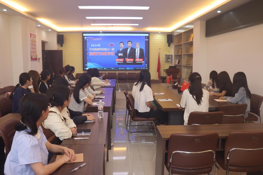 强化学习,凝聚安全共识。学院各级团支部广泛开展国家安全教育主题班会,帮助学生了解国家安全有关知识和当前发展态势,增强政治觉悟,树牢总体国家安全观。4月14日,学院组织师生代表于社科楼323会议室共同观看“千万师生同上一堂国家安全教育课”公开课。课程中以生动、真实的案例为依托,教育引导师生深刻理解国家安全的新时代意义和现阶段面临的严峻复杂形势,筑牢维护国家安全的思想共识和行动自觉。