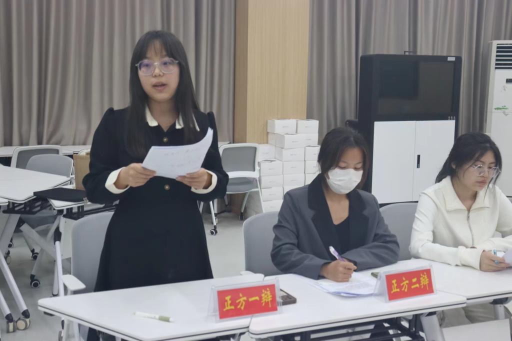 在社科楼516教室举办“景明杯”辩论赛选拔赛初赛。两组参赛选手、法学与社会学院优秀辩手、小说狂人