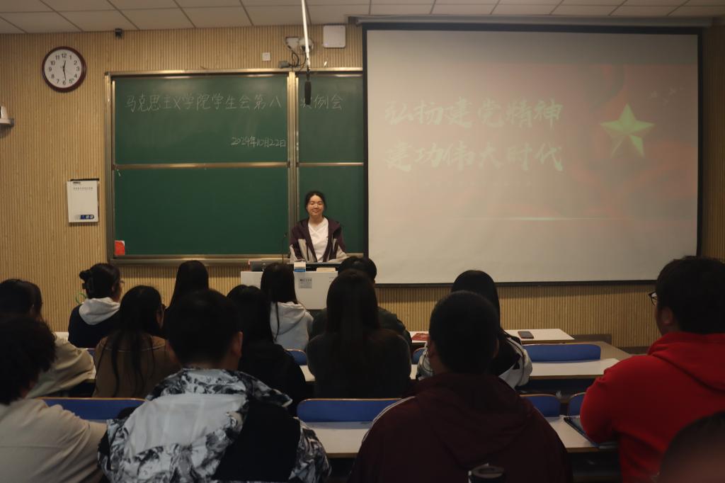 为深入弘扬伟大建党精神,激励青年学子在伟大时代勇建新功,10月22日中午,小说狂人 学生会在社科楼515教室开展了 “弘扬建党精神,建功伟大时代”的主题团课活动,此次活动由学生会主席团成员郝冰雨主持。