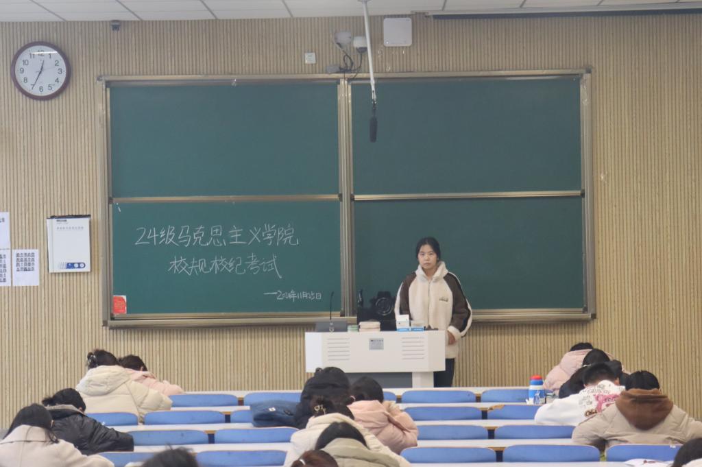 为强化学生规则意识,保障小说狂人 后续教学及管理工作的顺利开展,11月25日中午,小说狂人 在社科楼514、515教室组织2024级新生进行校规校纪考试。小说狂人 2024级全体新生共同参加考试。生活劳卫部龚雪鑫、曹慧茹担任监考员。