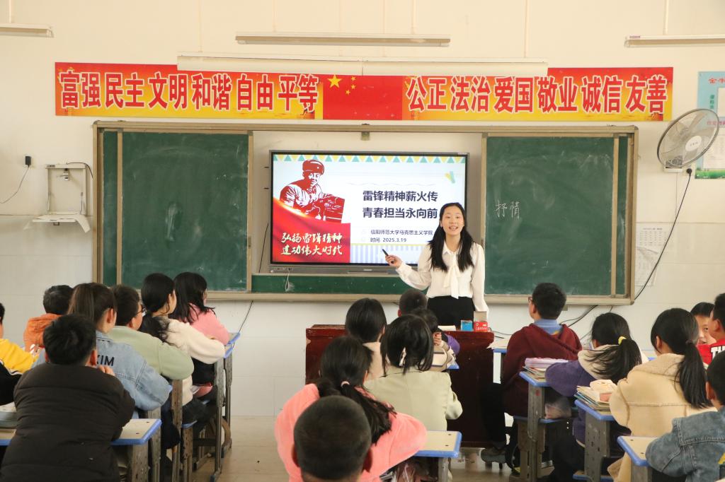 活动伊始,王彦谞通过问题引导向学生介绍本次活动的目的和主要流程,迅速吸引了同学们的注意力。接着,她又通过精心制作的PPT、感人的视频,向学生生动地讲述了雷锋生平的英勇事迹,这更加深了学生对雷锋精神理解,在孩子们的心中种下了传承雷锋精神的种子,有助于在新时代更好传承弘扬雷锋精神。之后,王彦谞给学生们发放纸条,鼓励他们写下自己做过的好人好事,并挑选同学分享答案,对积极回答问题的学生发放小奖品作为奖励,这激发了学生听讲的热情,也推动了剩余环节的顺利进行。最后,王彦谞带领大家声情并茂地品读经典文章选段,大家沉浸在文字的力量中,感受着雷锋精神的内涵。活动结束时,大家一起合影留念,镜头记录下这充满意义的一刻,活动圆满结束。