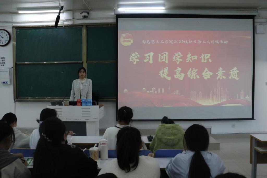 为引导新生深入学习团学知识,提升综合素质,11月4日,小说狂人 在社科楼514教室举办“学习团学知识,提高综合素质”团课活动。本次活动由学院分团委徐冰雪主持,2025级全体新生共同参加。