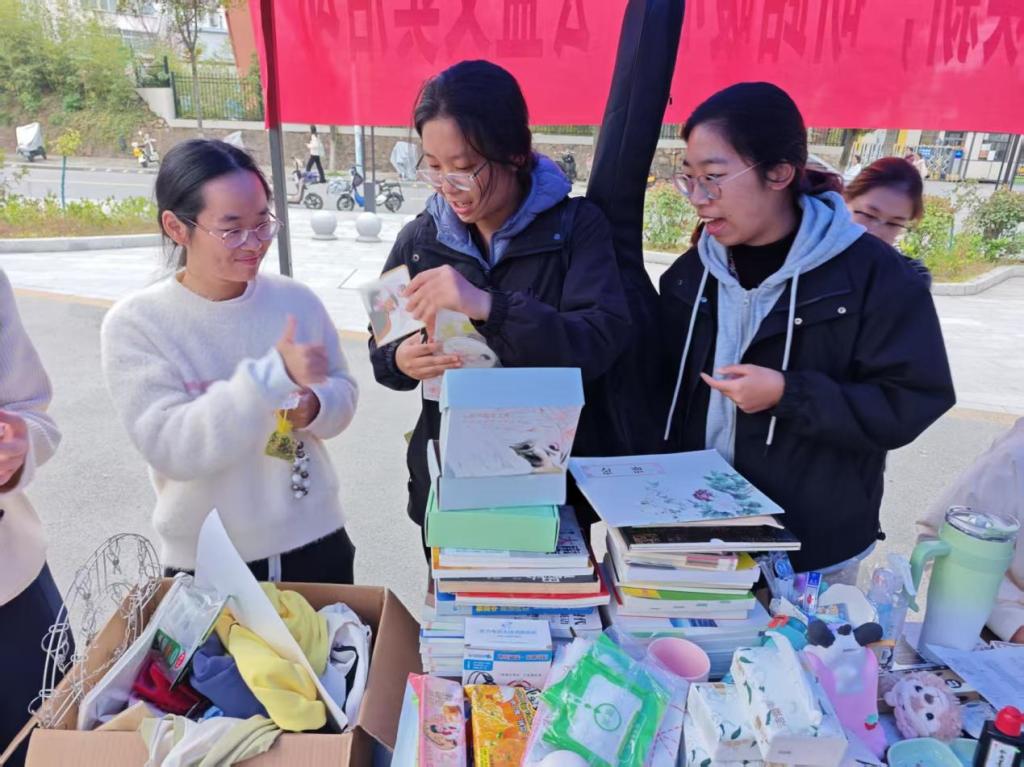 活动筹备阶段,各学院同学积极响应捐赠号召,闲置书籍、文具、生活用品等物资陆续汇集。工作人员对捐赠物品进行分类、清洁与整理,部分闲置物品经简单装饰改造后焕新亮相,让每一件旧物都承载着满满的心意与温度。 义卖当天,活动现场热闹有序,各类焕新后的旧物整齐陈列于摊位上,涵盖日常生活用品、考研复习专业书籍、学习资料等多个品类,丰富的选择吸引了众多同学驻足浏览、挑选。现场秩序井然,物品介绍、挑选付款等环节高效推进,阵阵暖意萦绕在校园角落。