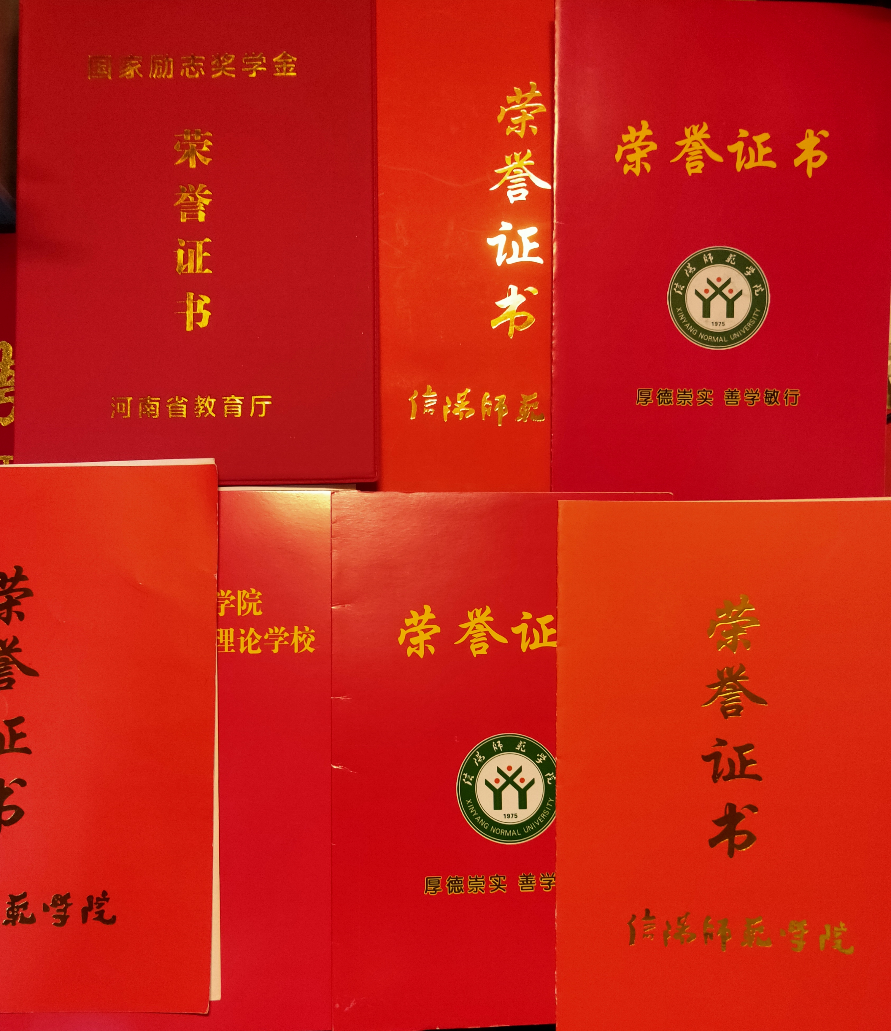 大学四年期间,该生坚持德智体美劳全面发展,连续三年获得奖学金,两次荣获国家励志奖学金。她积极参加各种活动来丰富自己的大学生活,在学院举办的“诚邀你我,与信同行”演讲比赛中获得“二等奖”,在信阳师范学院第三十八届运动会开幕式中获得“优秀表演者”称号。该生时刻牢记新时代青年大学生的初心和使命,曾获得校级“三好学生”、“模范干部”以及“优秀共青团员”等荣誉称号。这些奖项对她来说不仅仅是一份简单的荣誉,更是代表了学校、学院对她的认可,代表了她大学四年里无怨无悔的青春。