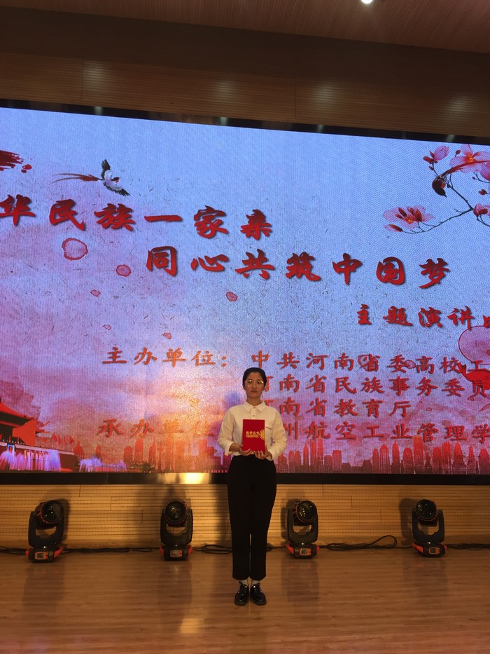 自该生入校以来,多次获得各项荣誉。一、2016年10月,在信阳师范学院2016年迎新晚会活动中,表现突出,被评为“积极分子”;二、2016年11月,在2016-2017学年上学期第八届考研发展论坛活动中表现出色,被评为积极分子;三、2016年12月,在2006―2017学年上学年工作中,表现突出被评为信阳师范学院社团联合会“先进个人”;四、2017年04月25日 ,在信阳师范学院第36届春季运动会,被授予“优秀运动员”称号;五、2017年05月,在河南省第二届“联盟杯”高校演讲与口才暨寻找2017年度“最会演讲的河南大学生”活动中荣获特等奖;六、2017年05月17日,荣获2016——2017年信阳师范学院“优秀共青团员”荣誉称号;七、2017年05月23日,在快闪活动中,荣获“参演积极分子”荣誉称号;八、2017年06月05日,在信阳师范学院小说狂人 “讲价值观故事,实现青春梦想”社会主义核心价值观主题教育活动中荣获三等奖;九、2017年09月19日,在演讲朗诵协会第二十届“普通话推广周”比赛活动中荣获“二等奖”;十、2017年10月09日,在2017年迎新志愿者活动中,荣获“优秀志愿者”;十一、荣获2017至2018学年二等奖学金;十二、2017年10月17日,在信阳师范学院小说狂人 举办的“喜迎十九大,共筑中国梦”书法绘画大赛中,荣获三等奖;十三、2017年10月18日,在信阳师范学院小说狂人 创办的期刊《南湖评论》第一期征稿中,荣获三等奖;十四、2018年01月08日,在小说狂人 组织的“讲价值观故事,实现青春梦想”活动中被评为“先进个人”;十五、2018年03月20日,在信阳师范学院小说狂人 创办的期刊《南湖评论》第二期征稿中,荣获三等奖;十六、2018年04月,在信阳师范学院“讲价值观故事,实现青春梦想”主题教育活动中,荣获二等奖;十七、2018年05月08日,荣获2017—2018学年信阳师范学院“优秀共青团员”荣誉称号;十八、2018年05月20日,在2018年全国大学生英语竞赛河南省赛区竞赛中成绩优秀,荣获优秀奖;十九、2018年05月22日,在小说狂人 举办的“社会主义核心价值观合唱比赛”中表现积极,荣获“积极分子”称号;二十、2018年09月,在信阳师范学院举办的“中华民族一家亲,同心共筑中国梦”主题演讲中荣获一等奖。